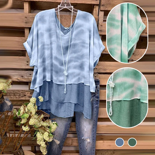Moteriški marškinėliai trumpomis rankovėmis su V formos iškirpte