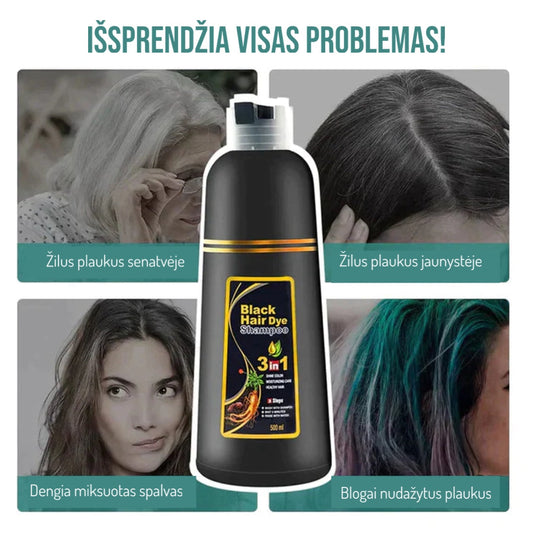 Juodo Plaukų Magija: 100% Pilnos Pilkos Plaukų Dangos Šampūnas