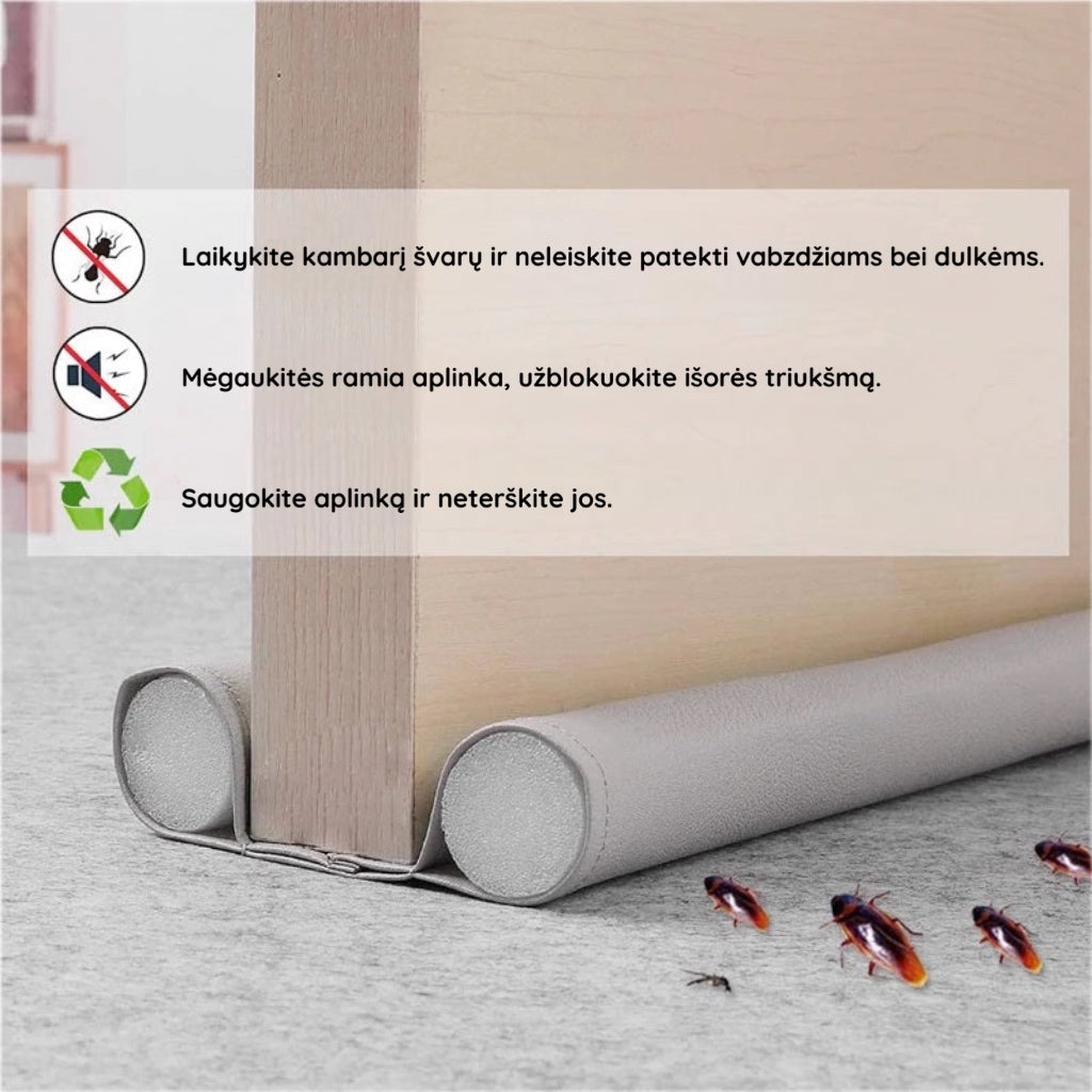 Durų dugno sandarinimo juosta yra sudaryta iš 2 putplasčio vamzdelių su centriniu lizdu, lanksčiai sandarinančių bet kokius durų / langų tarpus. Apsaugo nuo durų skersvėjų, kvapų, dulkių, triukšmo ir vabzdžių, pvz., tarakonų; taip pat blokuoja po durimis esančią šviesą.