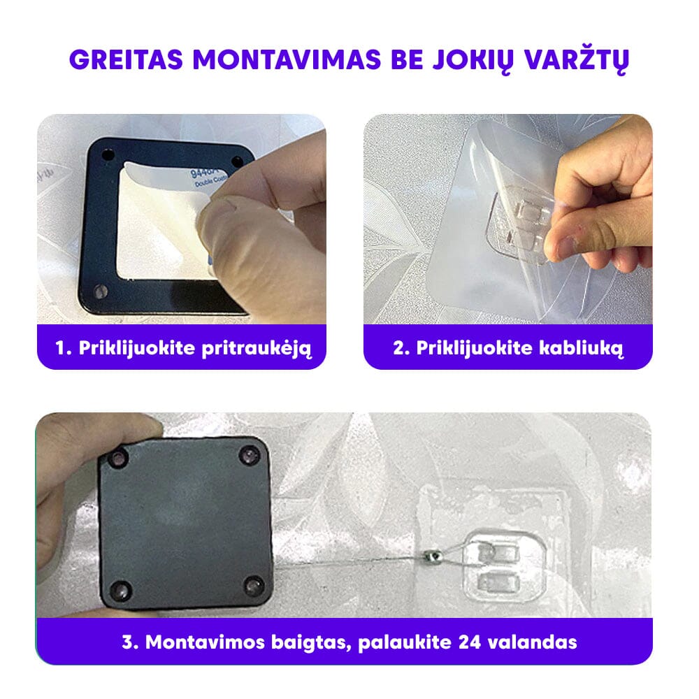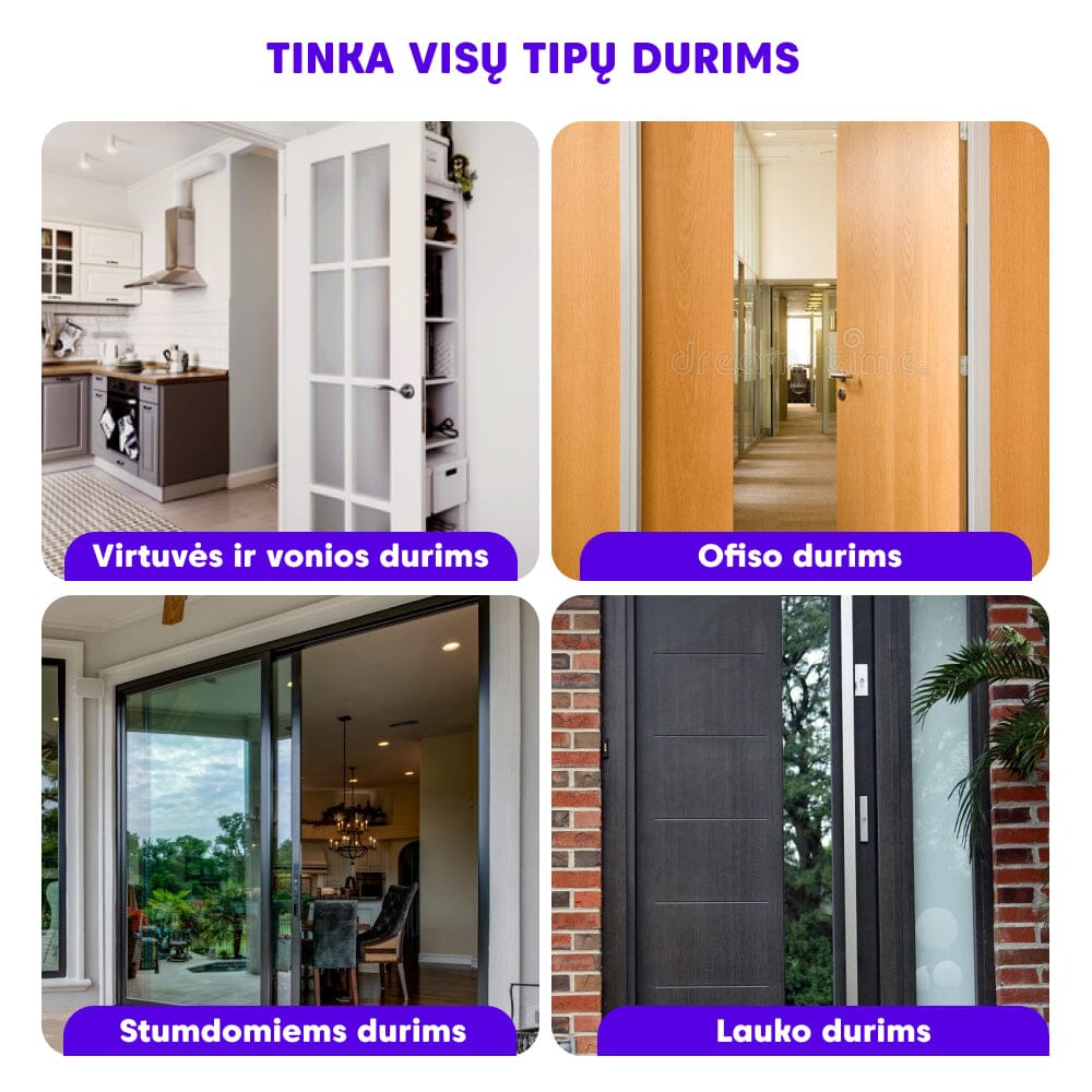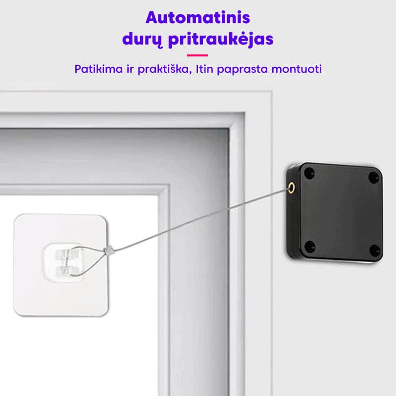 Beveik nepastebimas automatinis durų pritraukėjas automatiškai uždaro visas duris. Tinkamas naudoti butuose, gamybinėse patalpose, garažuose ir biuruose!