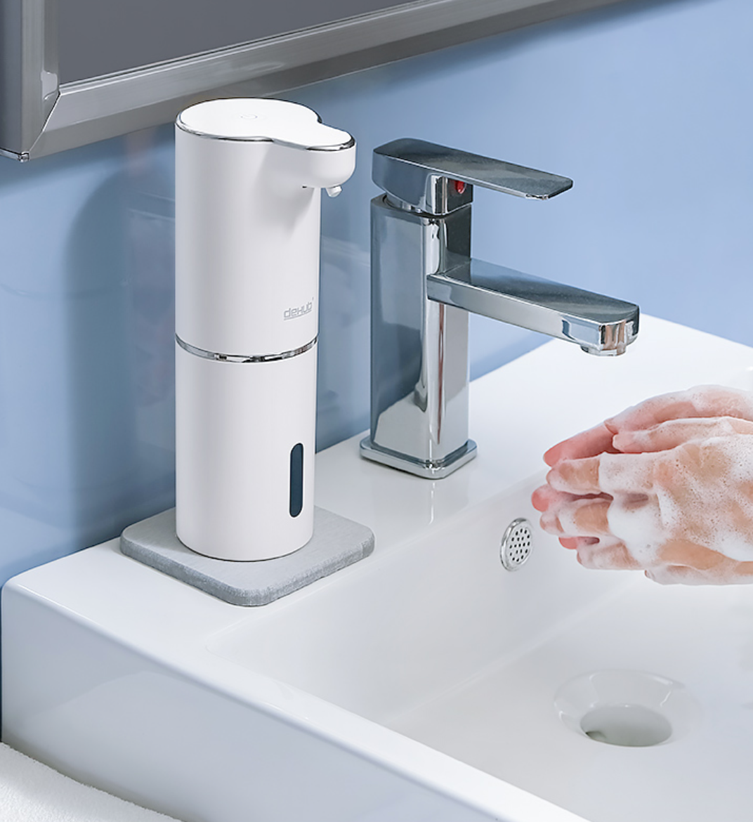 - Automatinis muilo putų dozatorius su įmontuotu infraraudonųjų spindulių jutikliu automatiškai atpažįsta po dozatoriumi esančia ranką ir išleidžia reikiamą muilo putų kiekį.