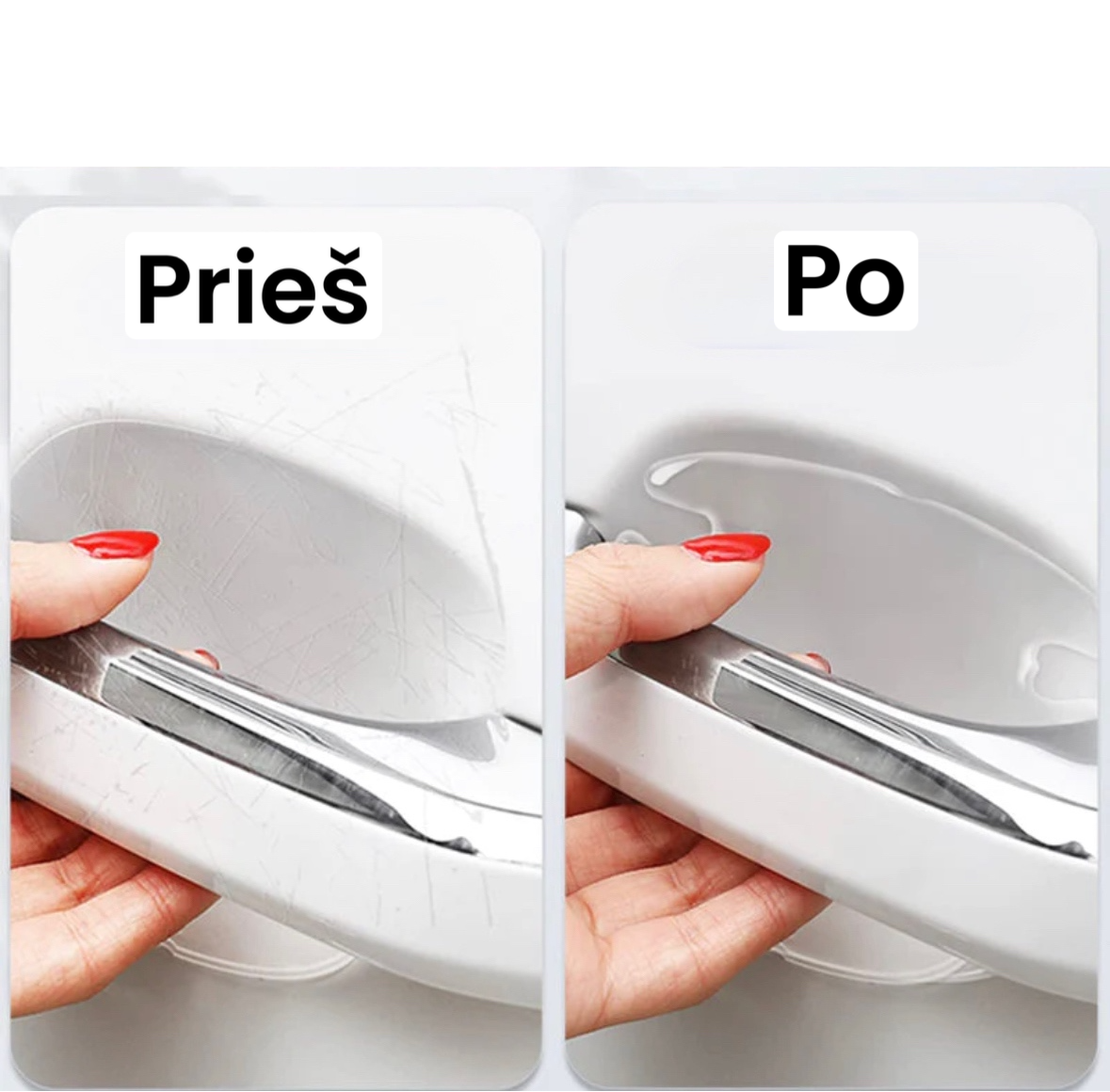 ✔️ Jūs gausite: 8 vnt. skaidrių automobilio durelių rankenų apsaugų nuo įbrėžimų rinkinį.