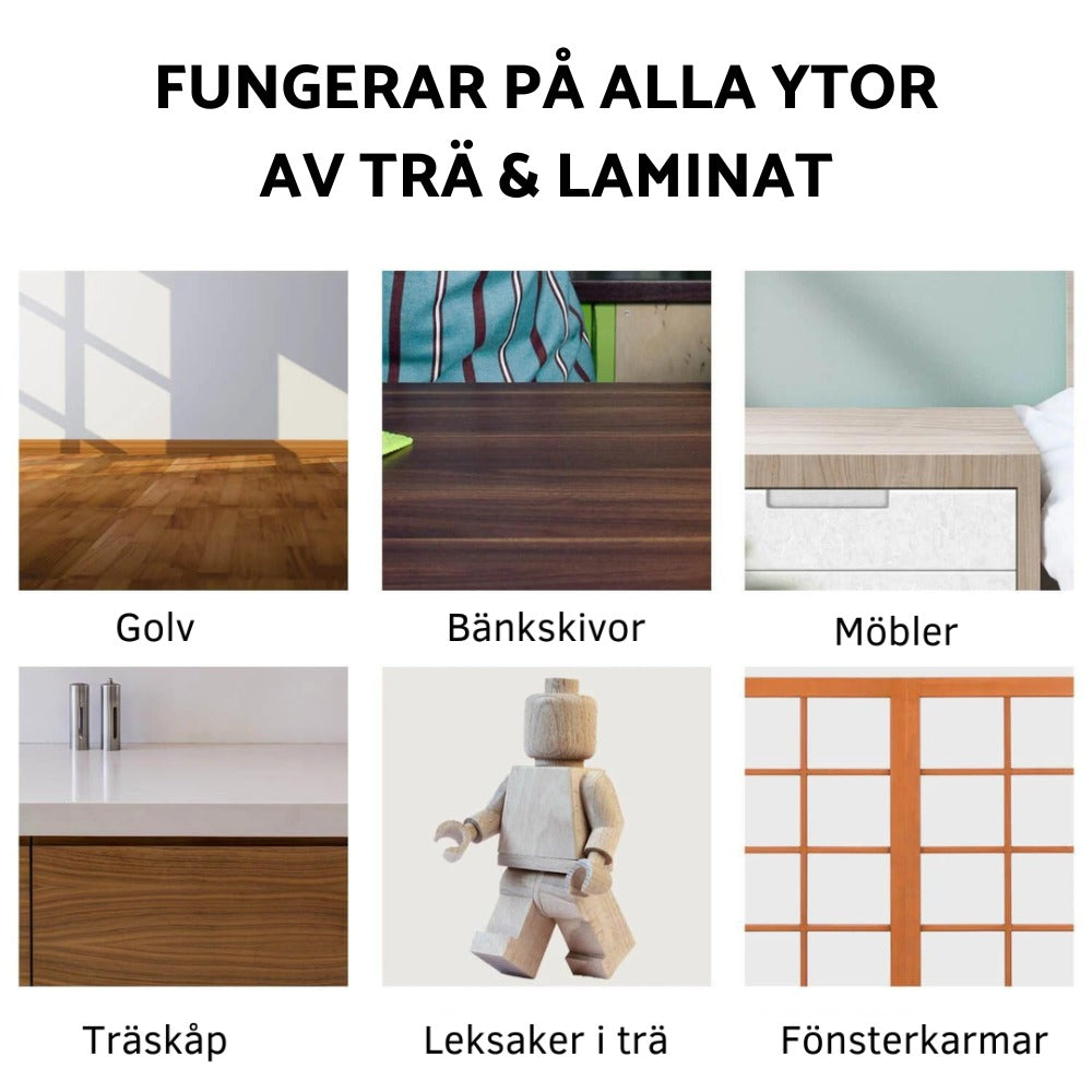 - Vaškas puikiai paslepia smulkius bei vidutinio dydžio gilius įbrėžimus ant paviršių. Akimirksniu užglaisto ir sulygina paviršių. Puikiai tinka įvairiems tarpams, įtrūkimams, skylėms užpildyti. Atkurkite senų grindų bei baldų išvaizdą turėdami veiksmingą priemonę! Greitai džiūna, nepalieka lipnumo. Įrankio galvutė yra šildoma, todėl akimirksniu išlydo vašką ir leidžia tolygiai padengti nelygumus.