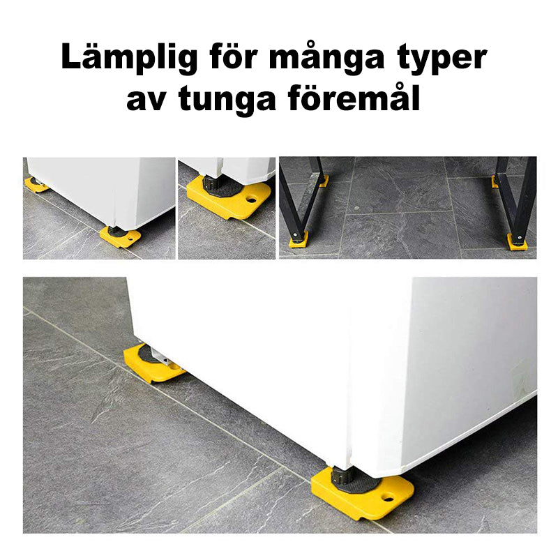 - Keturi moduliniai ratukai su guminiu pagrindu ir viena pakelimo svirtis leis lengvai perkelti sunkiai sveriančius baldus iš vienos vietos į kitą! Tai puikus rinkinys kuris palengvins baldų perkėlimo procesą ir neleis patirti nugaros traumų keliant baldus patiems.