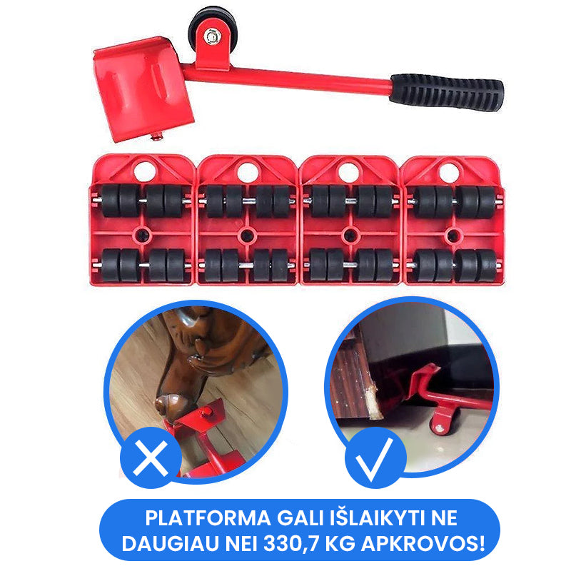 - Pamirškite brangiai kainuojančias baldų perkėlimo paslaugas! Su šiuo rinkiniu galėsite lengvai ir saugiai perstumdyti baldus patys!