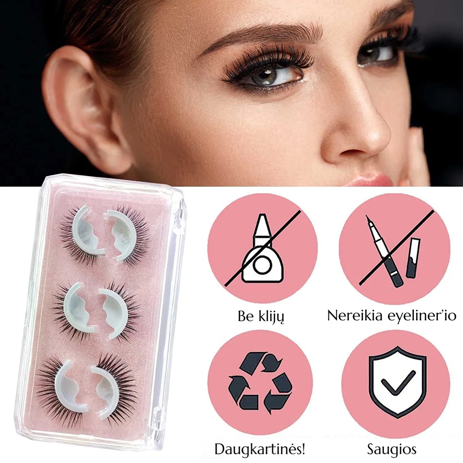 Išbandykite mūsų daugkartinio naudojimo blakstienas, kurios lengvos ir greitos naudojime labai supaprastina jūsų makiažo procesą