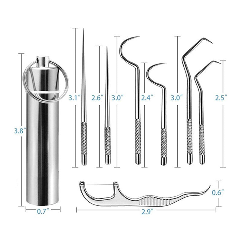 - Rinkinį sudaro 7 vienetai įrankių, kurie leis pašalinti susikaupusius maisto likučius tarpdančiuose. Skirtingi įrankiai leis prieiti prie kiekvieno danties ir saugiai pašalinti susikaupusias apnašas. Įrankiai pagaminti iš aukštos kokybės nerūdijančio plieno. Tai profesionalūs įrankiai, kuriuos naudoja odontologai. Pasirūpinkite savo dantų švara ir turėkite gražią šypseną!