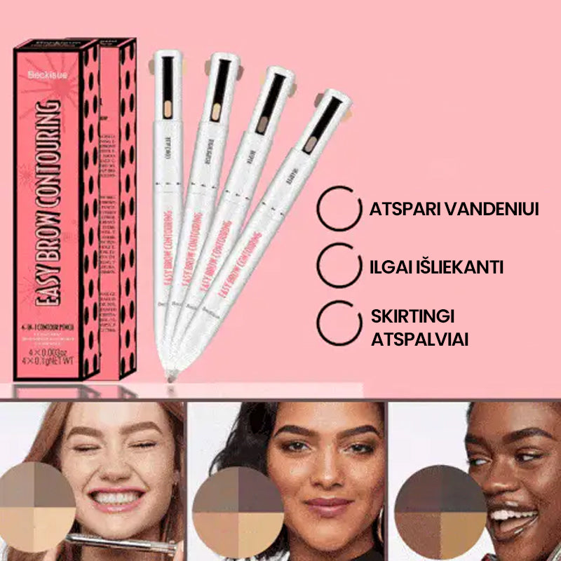 - Daugiafunkcinės paskirties antakių kontūravimo priemonė suformuoja nepriekaištingus antakius. Keturios funkcijos viename - suteikia šviesų šešėlinį efektą, paryškina natūralią antakių spalvą, suformuoja bei užmaskuoja plaukelių neturinčias vietas;