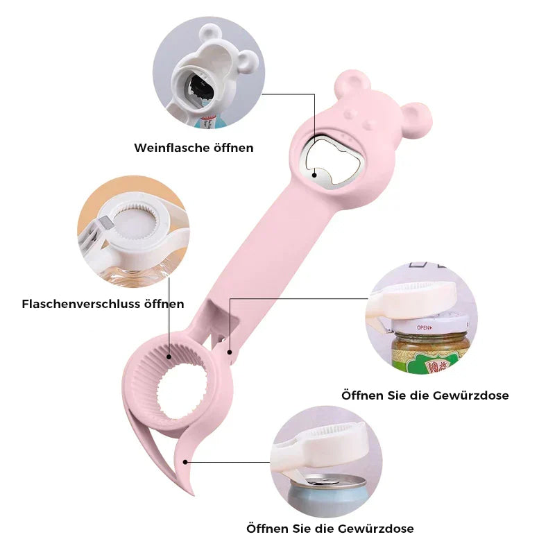 - Daugiafunkcinis įrankis, kuris vos per kelias sekundes atidaro skardinių dangtelius! Lengvai atsuka plastikinius butelių kamštukus. Kompaktiško dydžio atidarytuvą patogu turėti su savimi, kai esate gamtoje. Puiki pagalba vyresnio amžiaus žmonėms, kuriems sunku atsukti stipriai užsuktus gėrimų kamštelius.