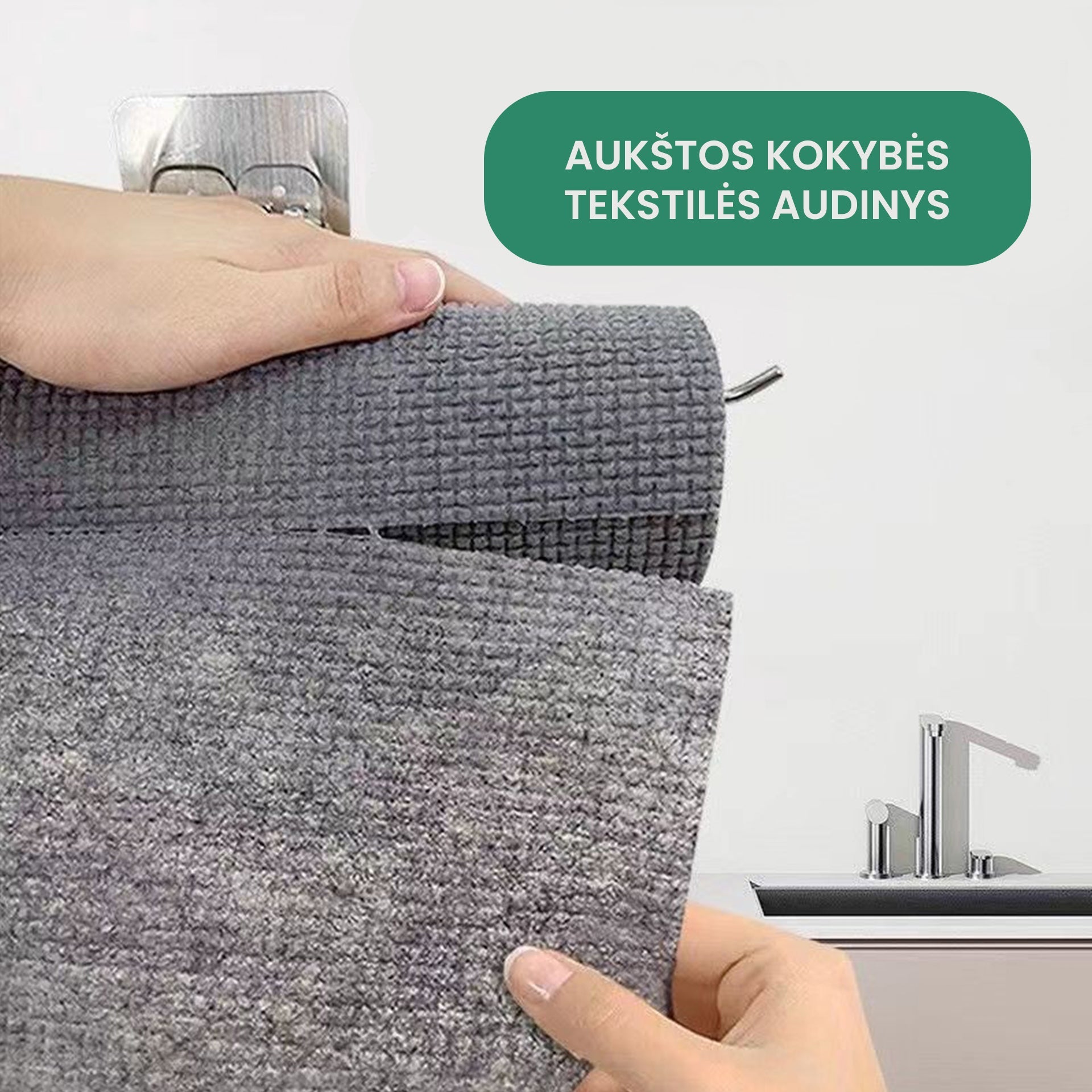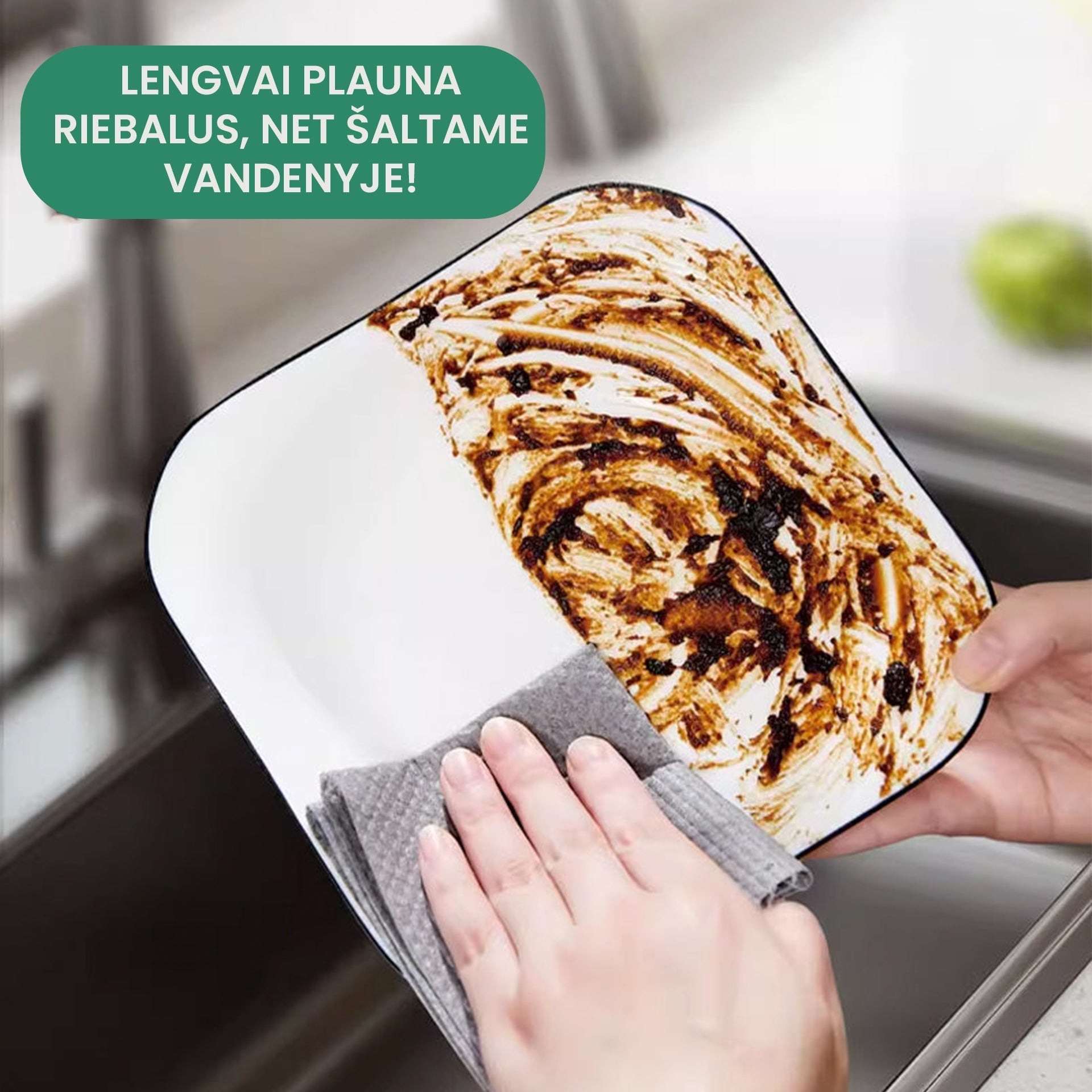 - Aukštos kokybės tekstilės audinys primenantis mikropluoštą ypatingai greitai sugeria drėgmę. Šluostė puikiai valo riebalą, dulkes bei kitus nešvarumus. Tinka ne tik indams plauti, bet ir valyti stalviršius ar daiktus. Ypatingas audinio švelnumas pasirūpina, jog valomi paviršiai išliktų lygus ir nesubraižyti. Nuo šiol virtuvės ir namų tvarkymas gali būti lengvesnis ir greitesnis įsigyjus tinkamą šluostę!