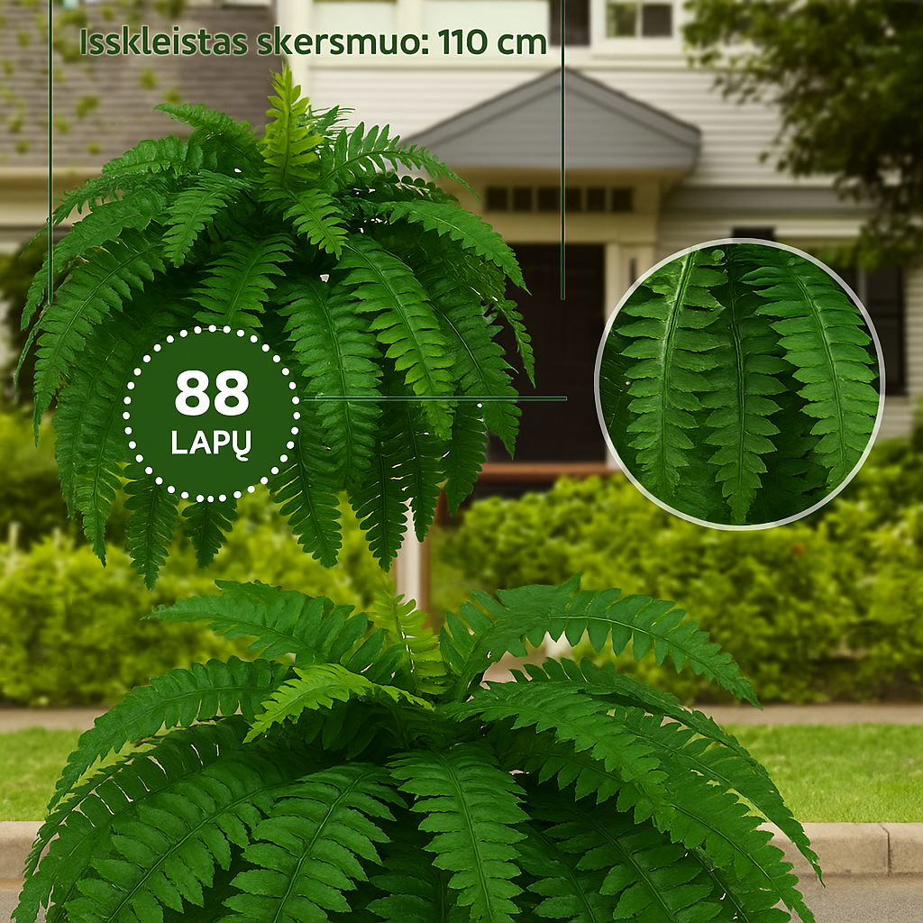 UV spinduliams atsparus tikroviškas dirbtinis Bostono papartis