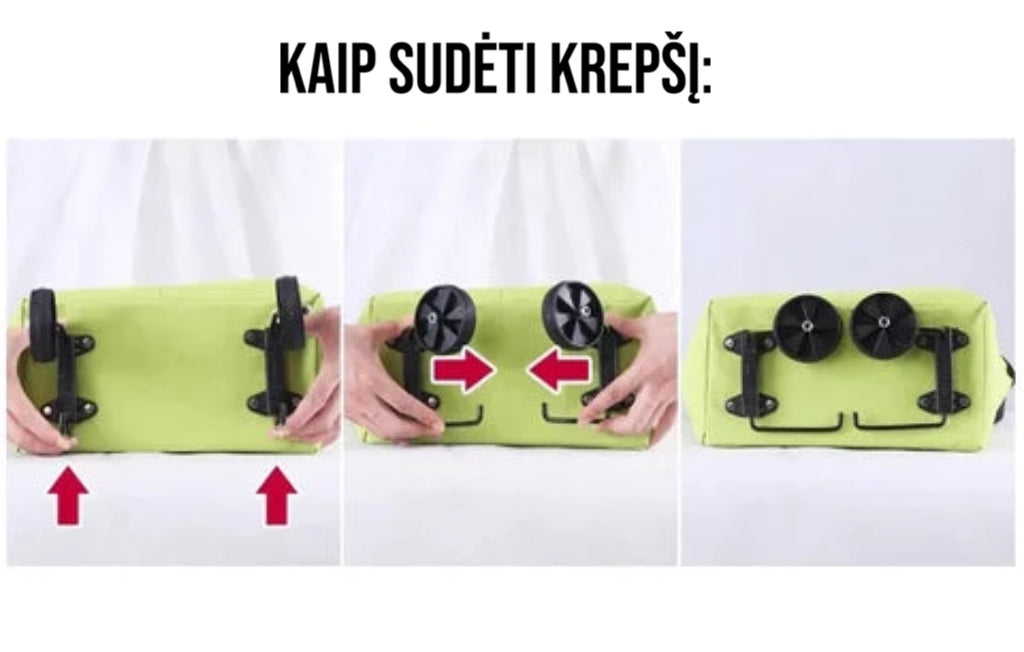 Ratukai taip pat gali būti sulankstyti, jei norite nešioti pirkinius rankomis - tai praktiška. Ratukai paslėpti po krepšiu, todėl neatkreipę dėmesio jų nepamatysite. Ratukai pagaminti iš gumos ir atlieka tylią funkciją 👍.
