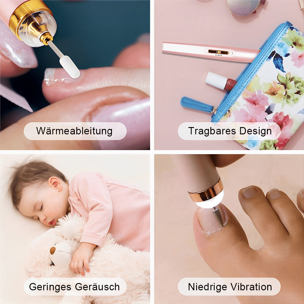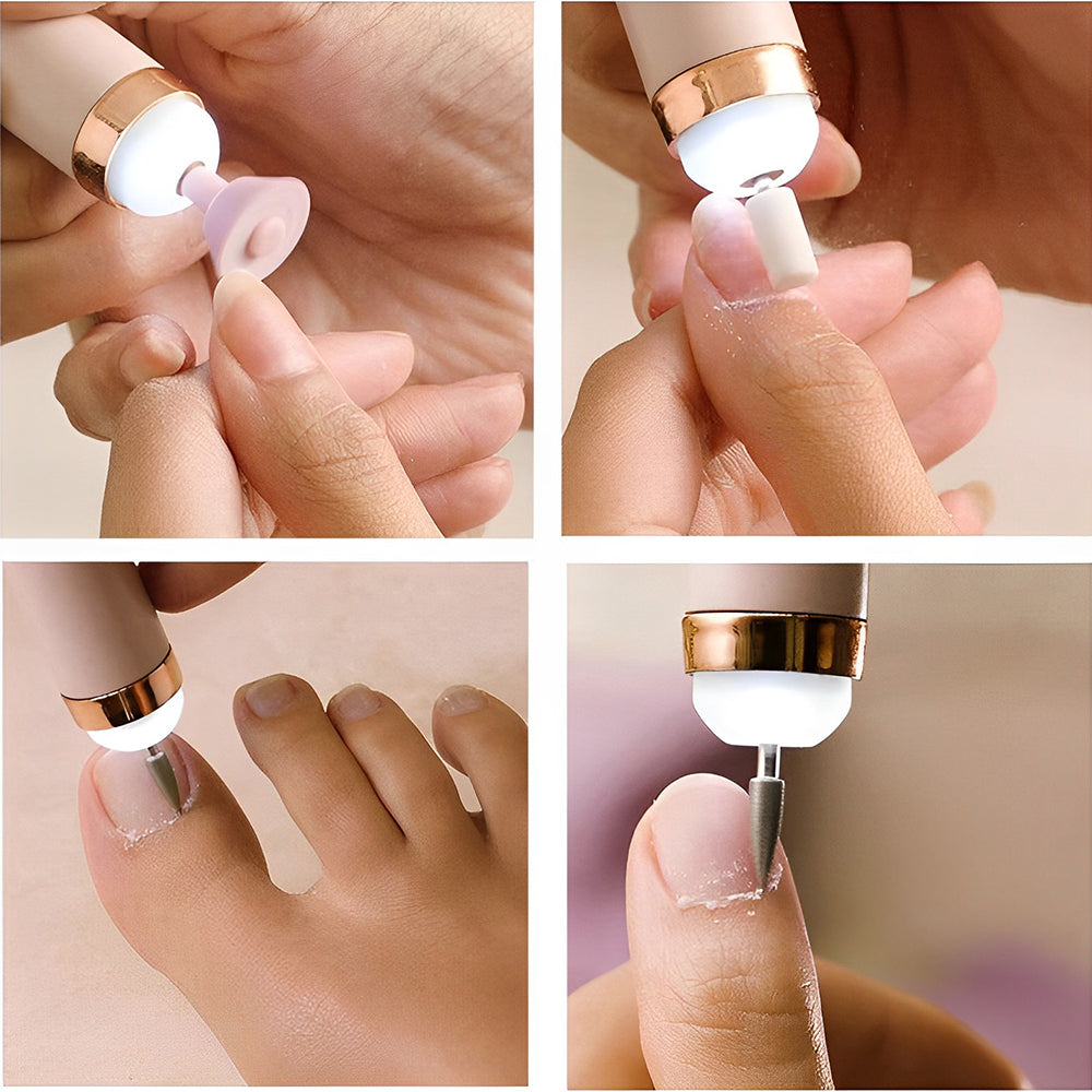 Lengva ir paprasta naudoti! Įsukite reikiamą frezos galvutę ir paspauskite veikimo mygtuką. Frezos antgaliai puikiai formuoja bei patrumpina itin kietus nagus.
