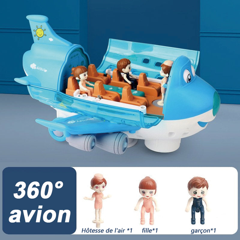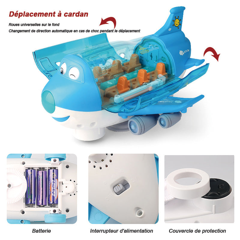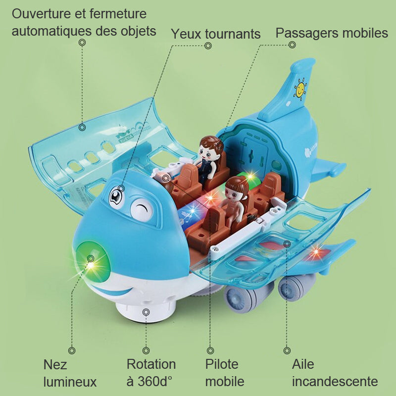 - Puiki dovana vaikams! Animacinė lėktuvėlio išvaizda ir šviečiančios lemputės atrodo itin žaismingai! Lėktuvas turi akis, kurios mirkčioja pagal leidžiama muziką. Lėktuvo viduje yra keleiviai.