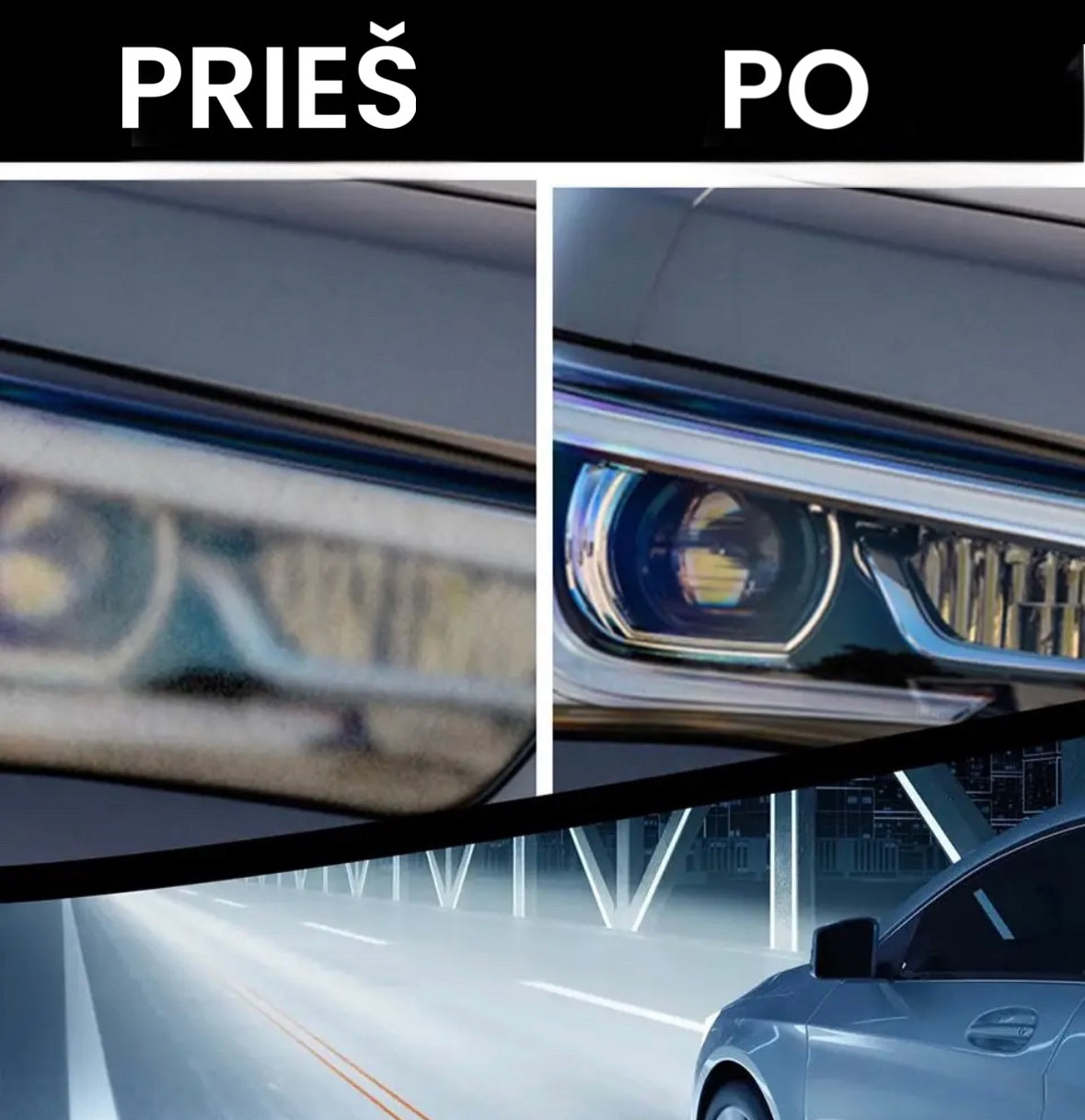 Tai universalus valymo ir remonto tirpalas, specialiai sukurtas priekiniams žibintams. Jis turi itin hidrofobinę stiklo dangą, kuri veikia kaip barjerinė danga ant priekinio žibinto paviršiaus.