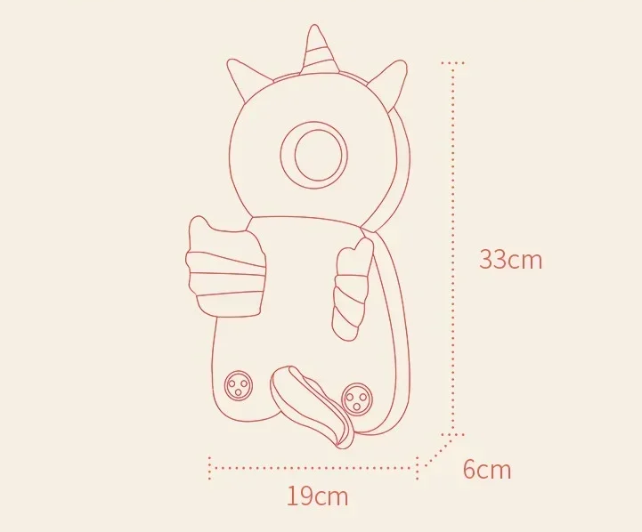 Speciali pagalvėlė mažyliams, kuri apsaugo galvą nuo sutrenkimų atsitiktinai krentant ant žemės. Itin minkšta pagalvėlė yra pralaidi orui. Ryškių spalvų bei žaisminga pagalvėlė yra lengvai uždedama ant nugaros. Tai lyg maža kuprinėlė, kurią mažyliai tikrai norės užsidėti. Pagalvėlė yra itin lengva, patogiai priglunda prie vaiko nugaros.