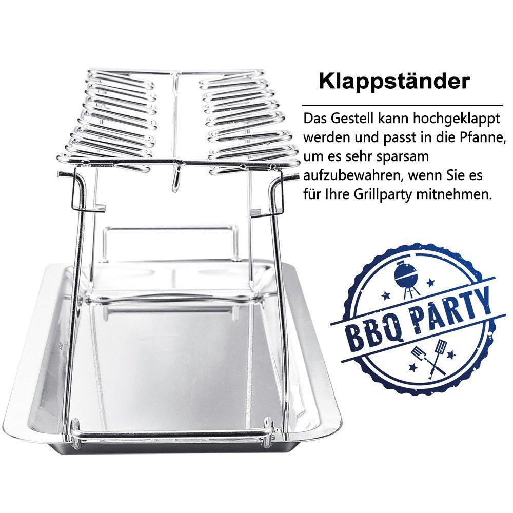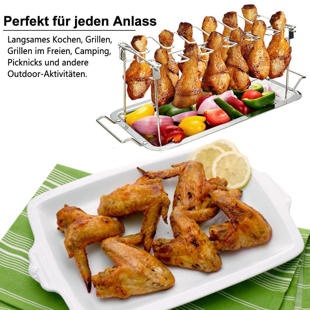 - Dėl savo unikalios grotelių formos galima patogiai vienu metu iškepti, net dvyliką višienos sparnelių! Grotelės pagamintos iš aukštos kokybės nerūdijančio plieno, užtikrina ilgalaikį grotelių naudojimą. Grotelės turi padėklą ant kurio galima sudėti daržoves ar bulves. Grotelės kartu su padėklu yra dedamos į orkaitę arba komado grilių.