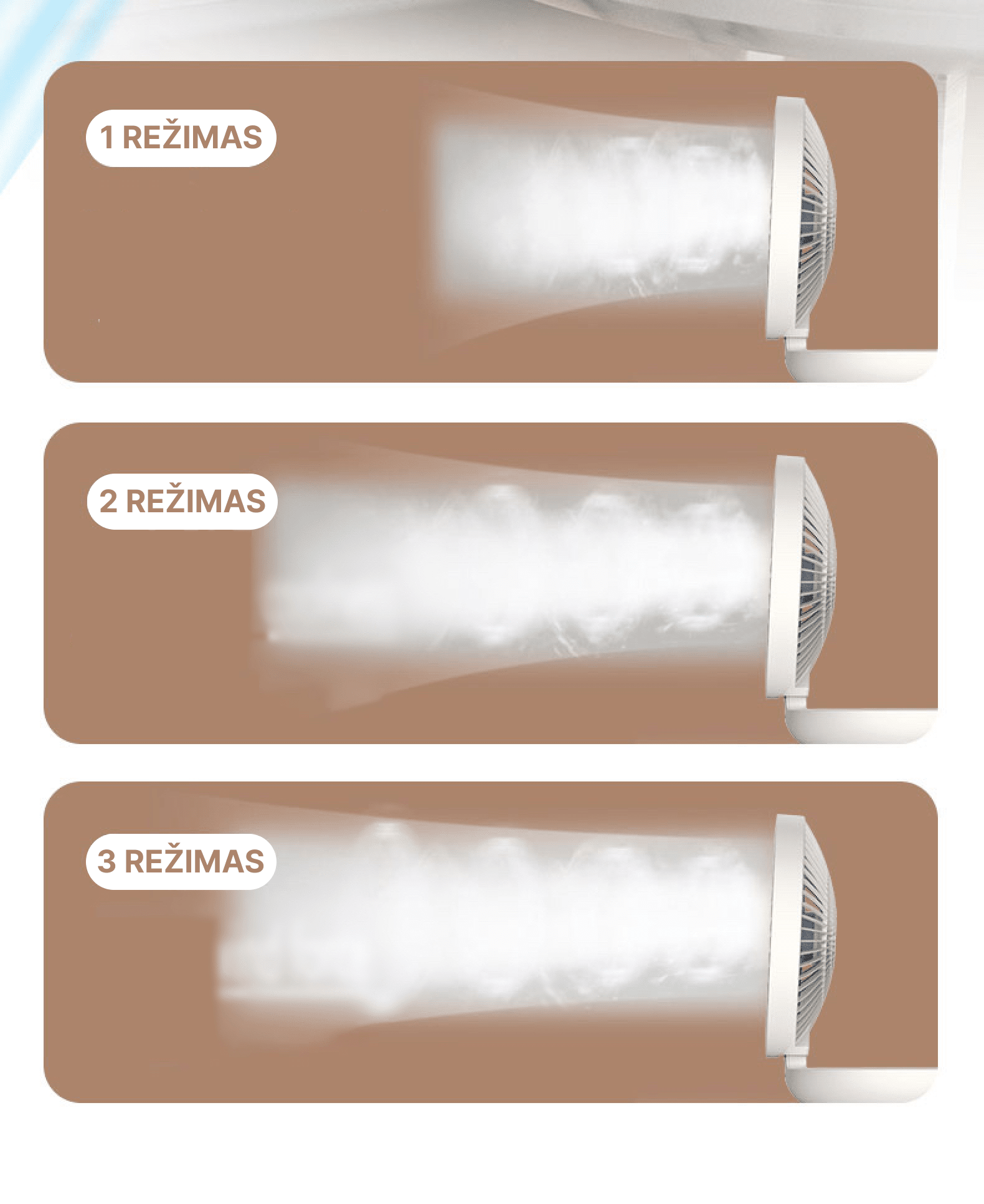 [Reguliuojamas greitis] Ventiliatorius turi 3 greičio nustatymus, o tai suteikia daugiau pasirinkimo galimybių esant skirtingoms aplinkos temperatūroms.