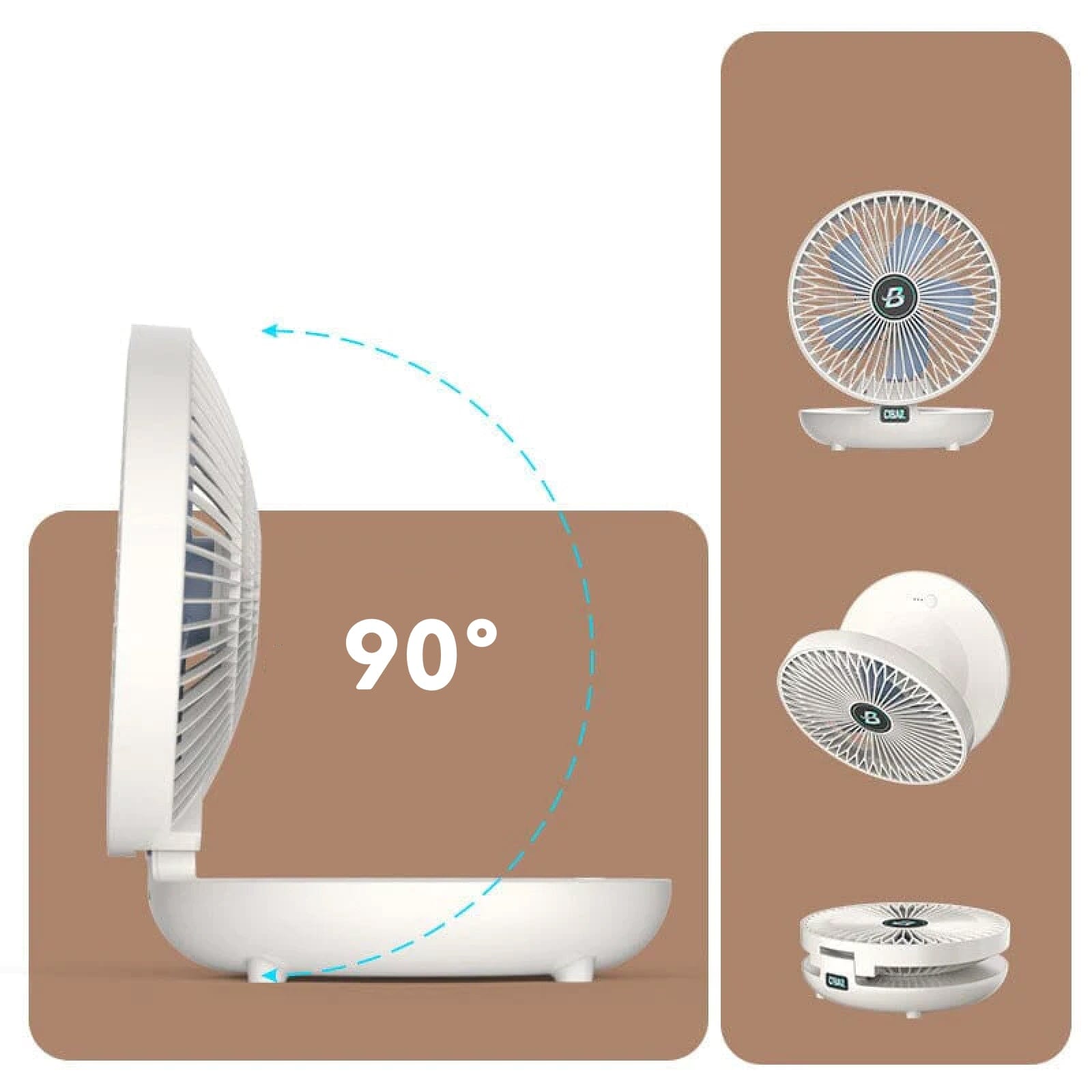 [Taupo energiją] Maišydamas patalpose esantį orą, ventiliatorius taupo energiją. Šis tyliai veikiantis ventiliatorius yra sulankstomas ir lengvas, todėl jį patogu laikyti, įsidėti į kuprinę, paplūdimio krepšį ar lagaminą, tinka įvairioms progoms, tiek namuose, tiek lauke, pavyzdžiui, iškyloms, kelionėms, stovyklavimui.