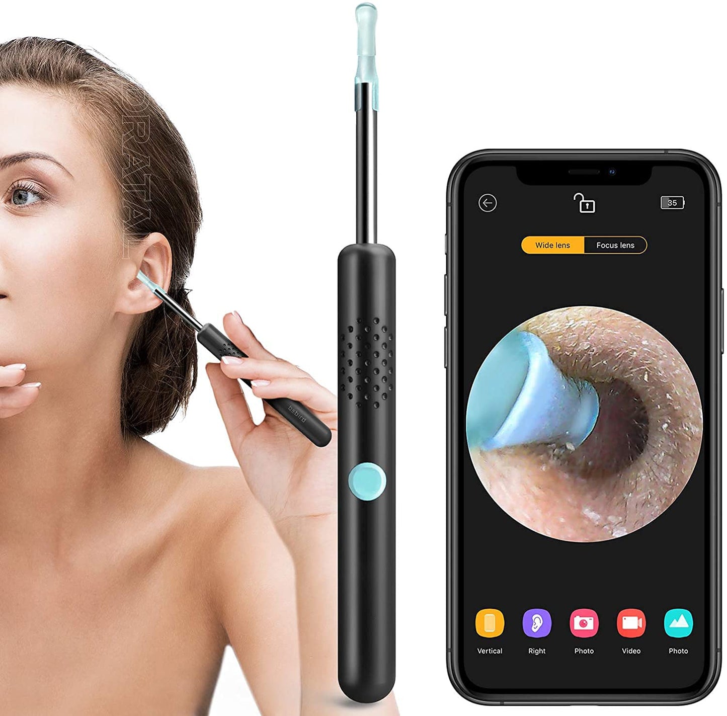 - Šis įrankis turi įmontuotą mažą kamerą, kuri leidžia vartotojui stebėti ausų vidų per mobilųjį telefoną arba kitą įrenginį! 6 ašių giroskopas leidžia matyti aiškų ir ryškų ausų vidaus vaizdą per ekraną.