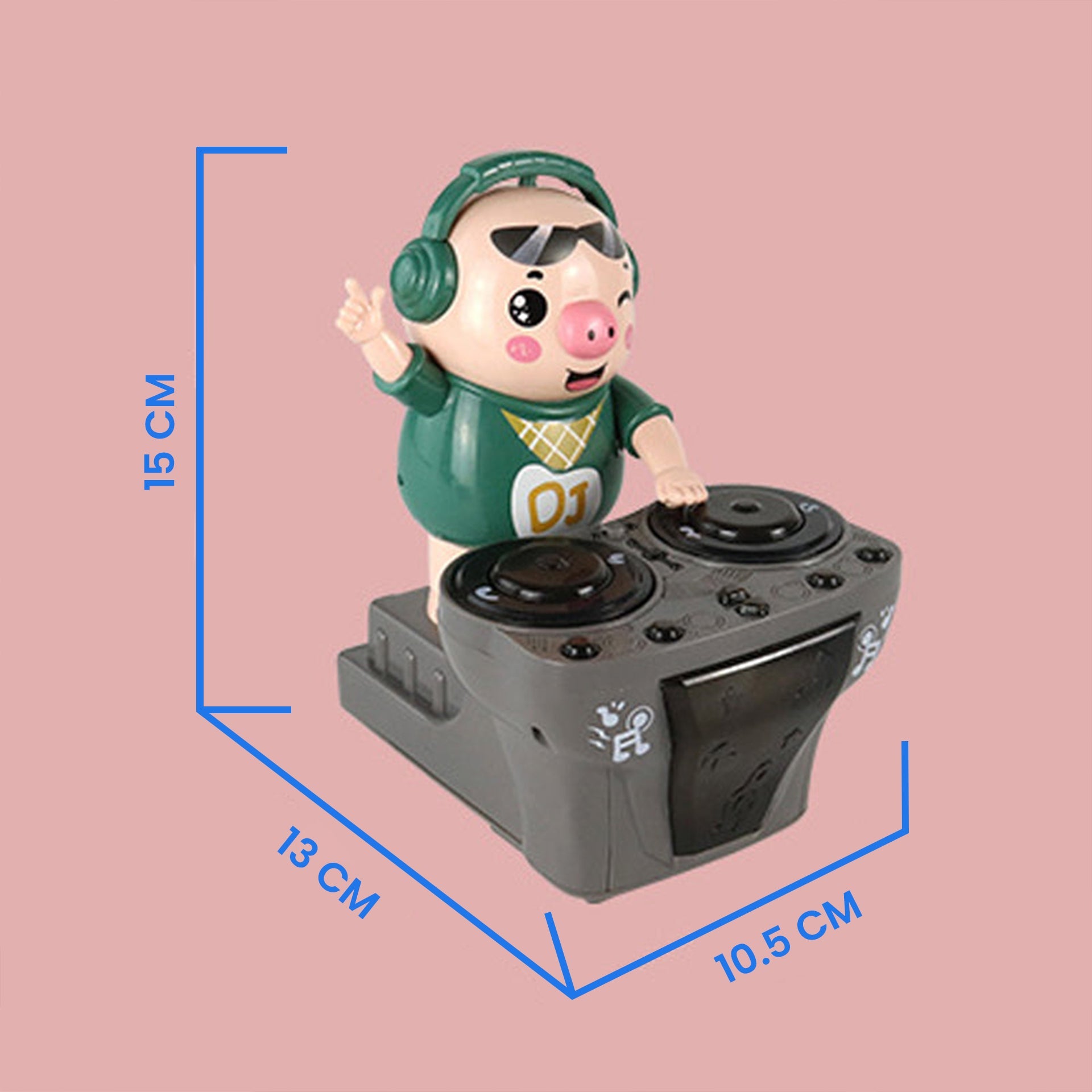 - Muzikinis žaislas ne tik skleidžia garsą, bet ir kartu gali judėti. Paršelio kūnas juda kartu su muzikos ritmu, į priekį ir atgal. Paršelio rankos juda ties DJ pultu ir junginėja muziką;