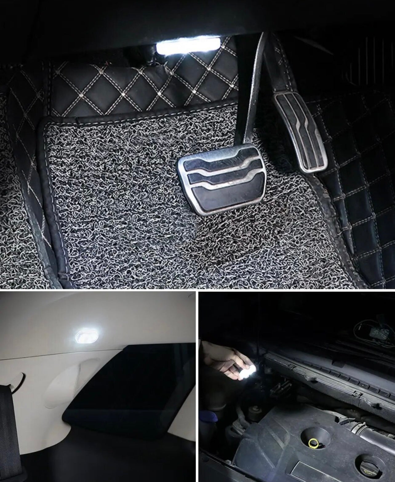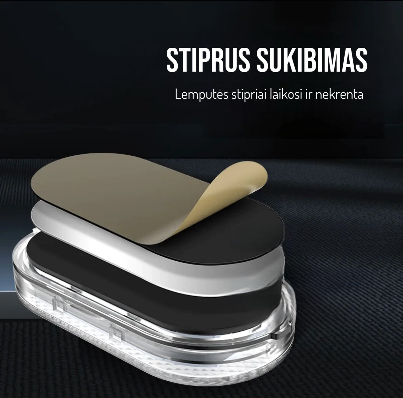 - Galima montuoti visur, magneto adsorbcijos montavimas, galima montuoti daiktadėžėse, porankių dėžutėse, durelėse, sėdynių kampuose ir kitose tamsiose vietose, kad apšviestumėte ir surastumėte daiktus.