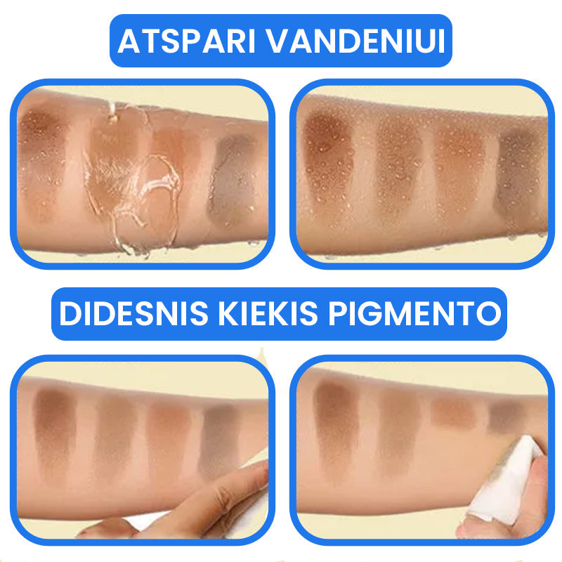- Atspari vandeniui. Atspari drėgmei ir prakaitui maskuoklio formulė užtikrina ilgą išsilaikymą;