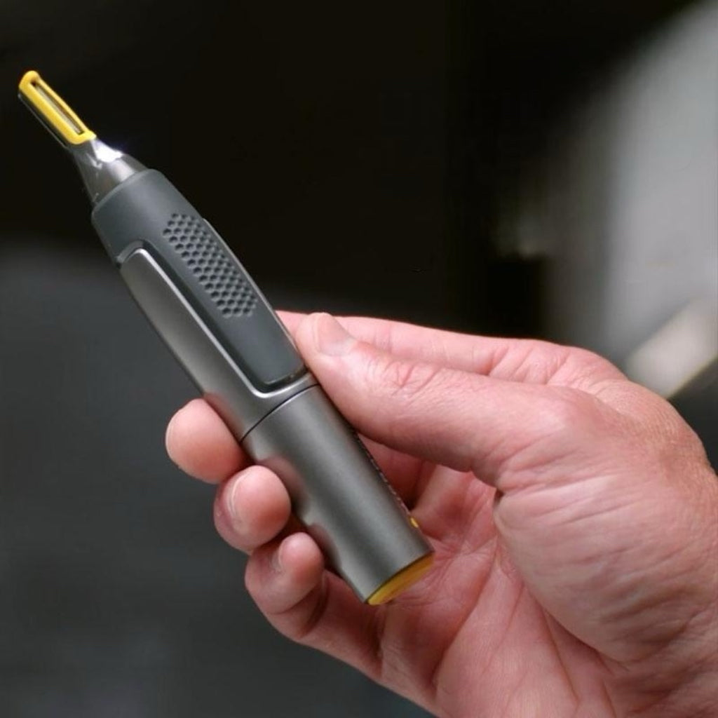Visiškai naujas mikro-precizinis kirpiklis turi itin ploną galvutę su tobulai pasuktais, šonais sumontuotais peiliukais, kurie pasiekia vietas, kur kirpimo mašinos ir žirklės nepasiekia. Dabar, su mikro-osciliuojančiais vokiškais nerūdijančio plieno peiliais, sujungtais su titanu, jis daro jus kitokiu.