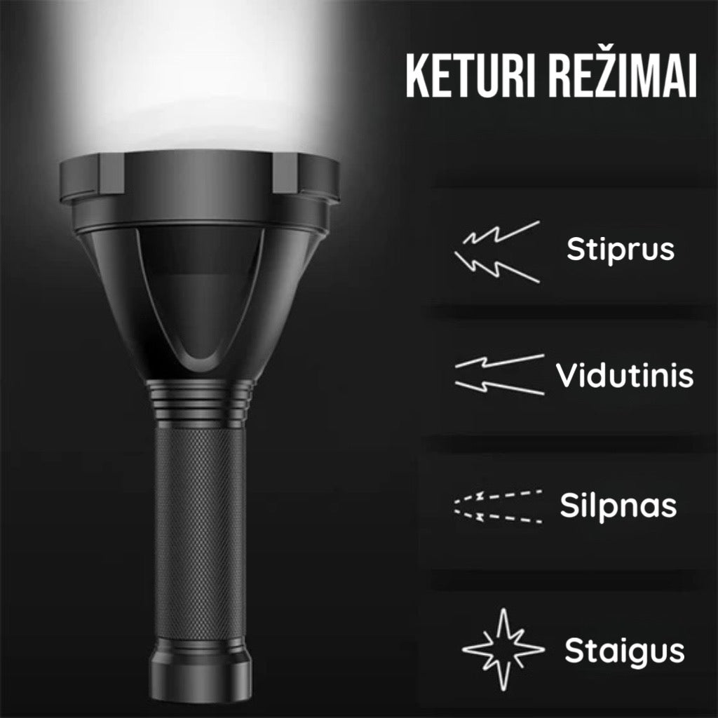 Ryškus platus spindulys: itin platus spindulys apšviečia visą kambarį arba didelę kiemo dalį. Jis 50 kartų ryškesnis už daugelį standartinių automobilių žibintų. Šį LED žibintuvėlį maitina įkraunamas akumuliatorius (pridedamas), kuris padeda taupyti akumuliatoriaus sąnaudas ir yra labai ekologiškas. Tai patogus bet kurio namų ūkio ar avarinio rinkinio priedas.
