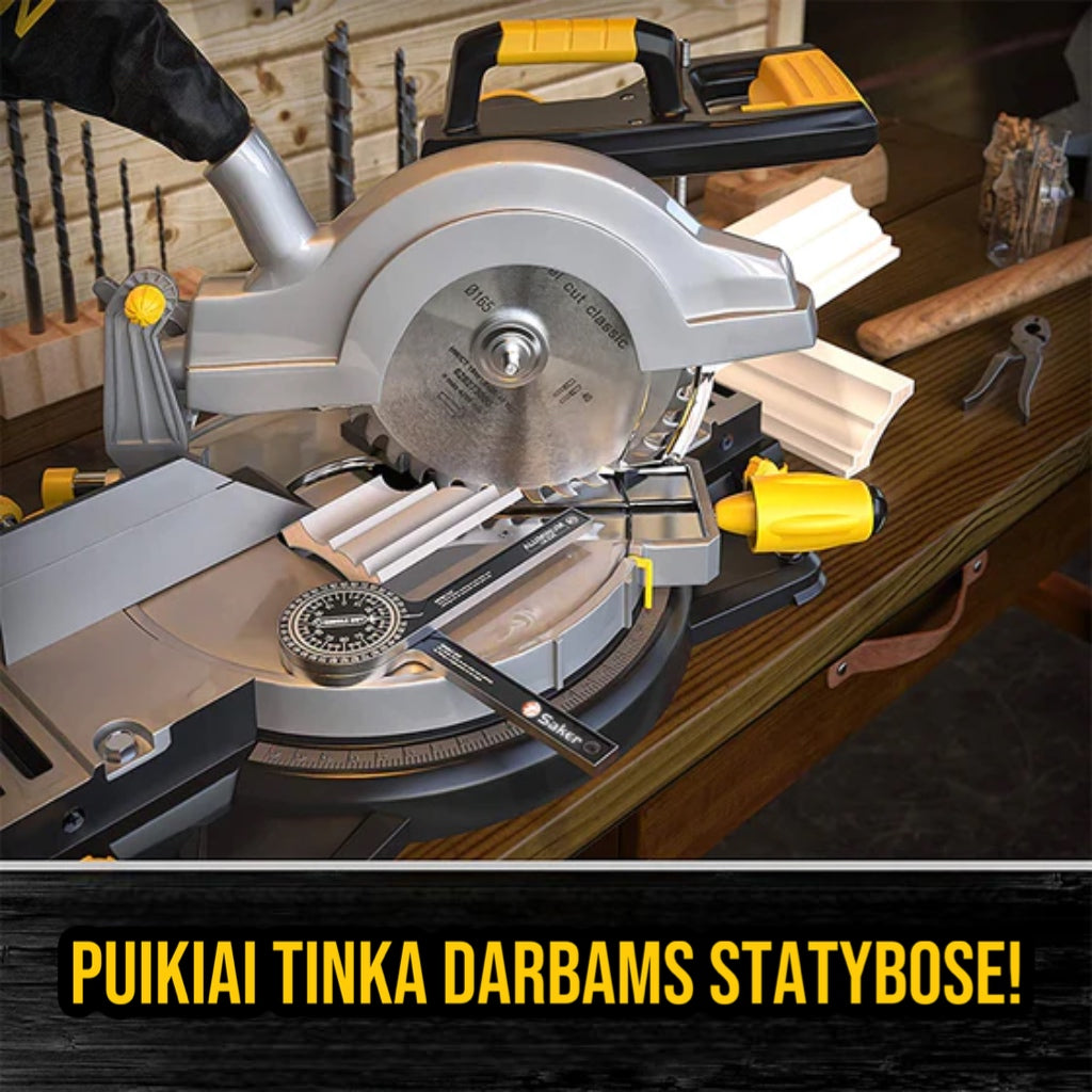 Pamirškite apie spėjamąjį darbą - du kampai darbinį kampą perkelia tiesiai į medines lentas, kad galėtumėte tiksliai išmatuoti kampus.