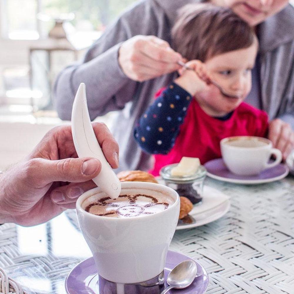 - Tai daugiafunkcinis ir praktiškas įrankis, kuriuo galėsite papuošti ne tik kavos putą, bet ir pyragus bei užkandžius. Dažniausiai raštams išgauti naudojamas cinamonas, šokolado milteliai ar cukraus pudra. Šie ingredientai padeda išgauti meniškus vaizdus bei raštus.