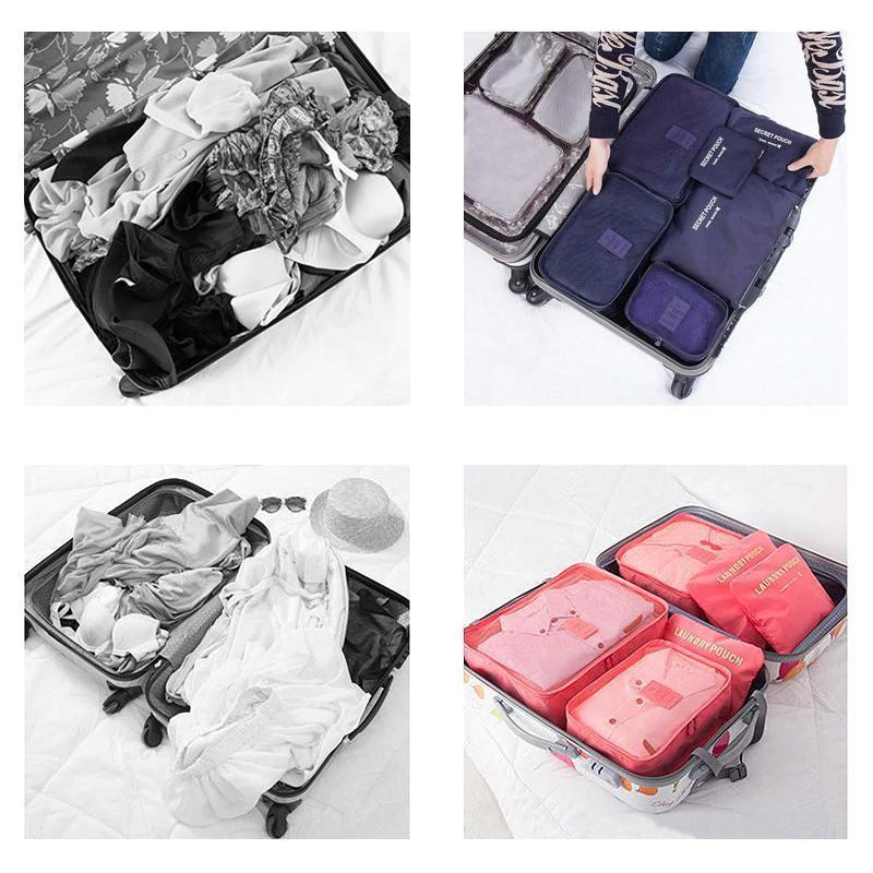 - Šis šešių dėklų rinkinys leidžia tvarkingai surušiuoti daiktus ir juos sutalpinti lagamine! Dėklai yra pralaidūs orui, todėl viduje esantys drabužiai išliks šviežaus kvapo ir švarūs. Skirtingo dydžio dėklai, kuriuos pritaikysite visiems kelionei reikalingiems daiktams sudėti.