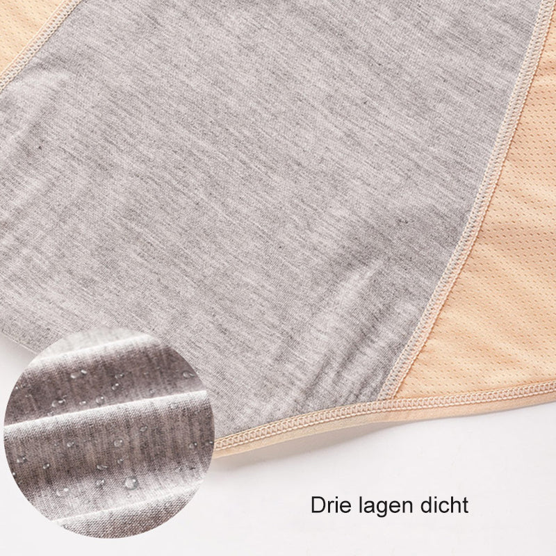 - Trijų sluoksnių kelnaičių klynelis sugeria šlapimą ir neleidžia prasiskverbti į išorę. Puiki apsauga mėnesinių metu! Kelnaitės puikiai priglunda, nesmukčioja. Jauskitės patogiai ir saugiai! Tausokite aplinką!