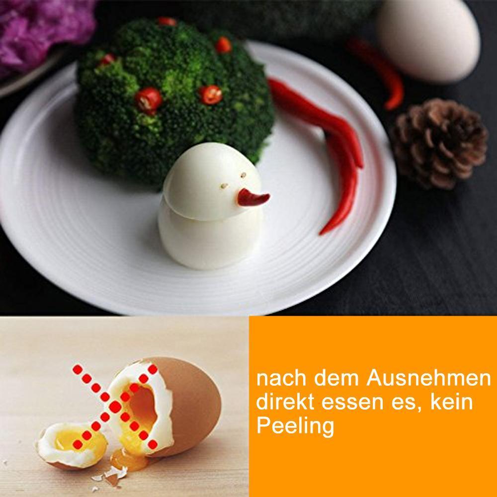 Lengvas naudojimas ir valymas. Su šiais virimo indeliais galėsite greitai ir lengvai pagaminti kietai arba minkštai virtus kiaušinius. Tiesiog įmuškite kiaušinį į indelį ir išvirkite. Skirtingą kiaušinių virimo laiką rasite instrukcijoje. Be to, šiuos virimo indelius galima plauti indaplovėje.