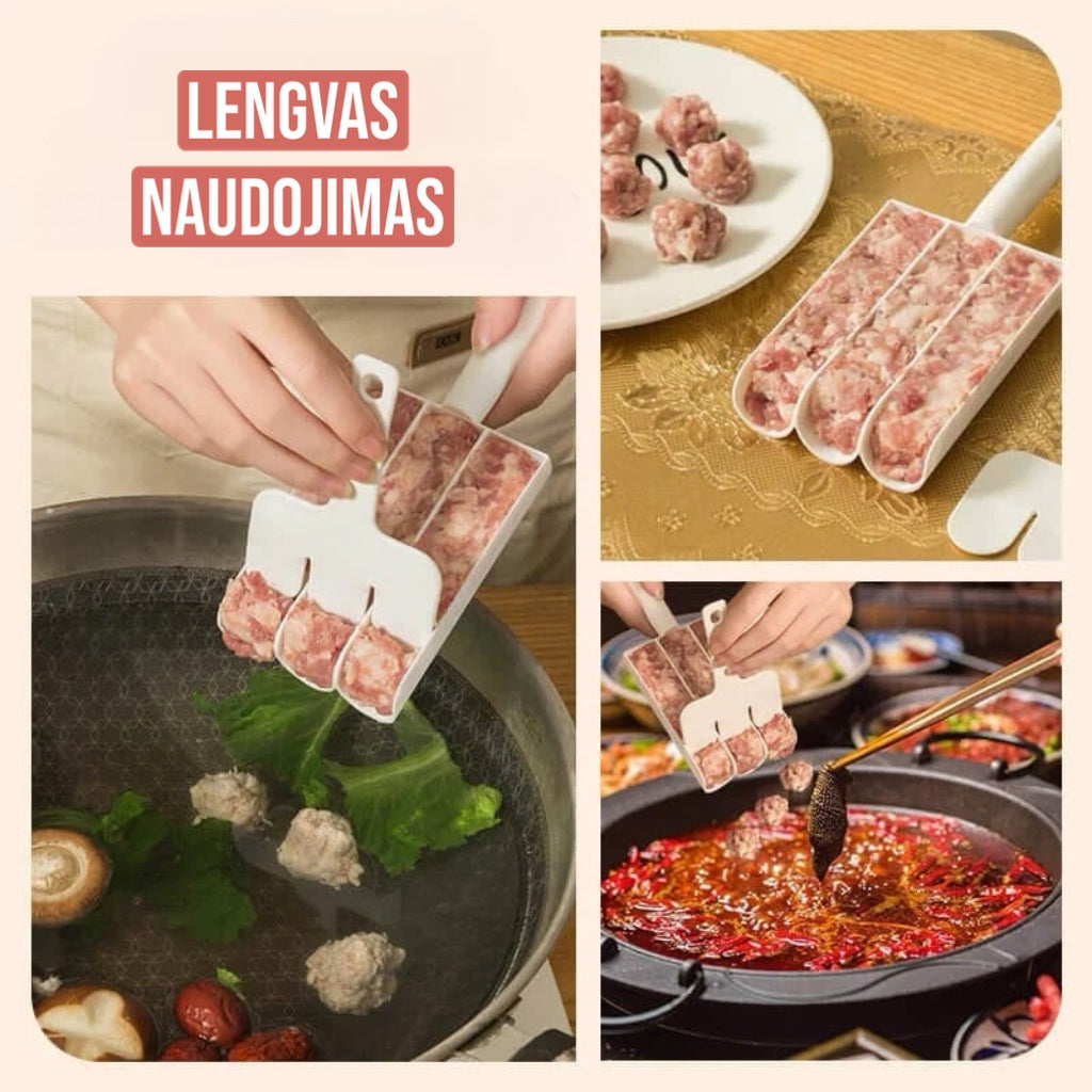 Naudodami šią kūrybišką trigubų mėsos kukulių gaminimo priemonę galite greitai pagaminti tris gerai suformuotus mėsos kukulius vienu metu, nesusitepdami rankų!