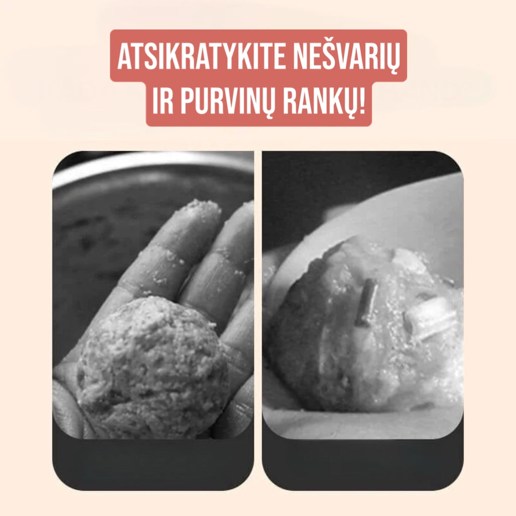 Tiesiog lengvai paspauskite šaukštą su mažu kastuvėliu į maltą mėsą ir galite gauti tobulą mėsos kukulį ir nesutepti rankų.
