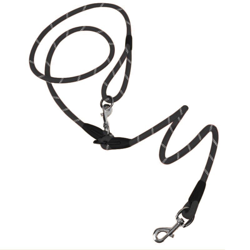 Pagamintas iš aukštos kokybės nailono pintos virvės, kuri yra patvari ir patogi tiek augintiniui, tiek vedžiojantiems šuniukus žmonėms. Šiuolaikiškas virvės dizainas leidžia šuniuką vedžioti be rankų! Perkelkite virvę sau per petį ir leiskite šuniukui eiti. Minkštas virvės audinys neveržia ir nespaudžia pečių.