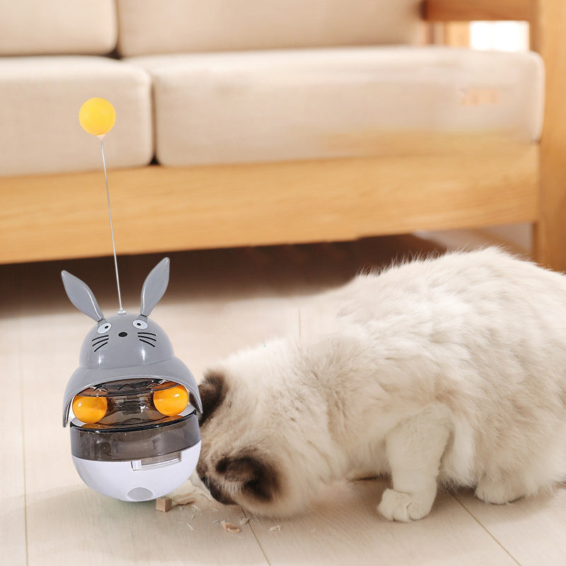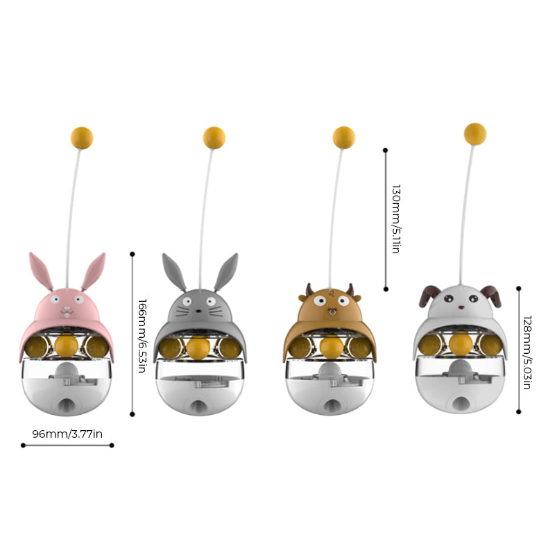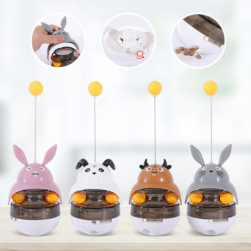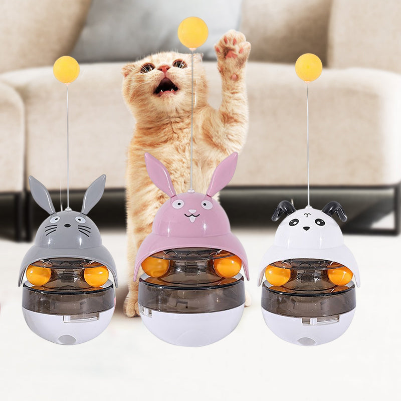 - Žaislas suteikia katėms fizinio judėjimo bei pramogų! Katės bandydamos sučiupti viršuje esantį geltoną kamuoliuką priverčia žaislą linguoti. Žaislo lingavimo metu, įdėtas sausas maistas iškrenta ir taip nudžiugina kates! Šis svyruojantis kamuolys neleidžia katėms nuobodžiauti, suteikia džiaugsmo bei laimės.
