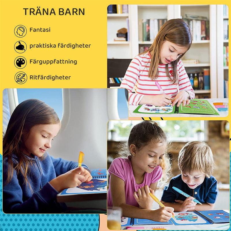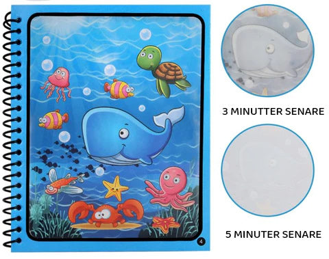 - Spalvinimo knygelė kuriai nereikia jokių dažų ar pieštukų! Įmerkite rašiklį į vandenį ir perbraukite per knygelėje esantį paveikslėlį. Stebėkite kaip išryškėja paveiksliuko vaizdas!