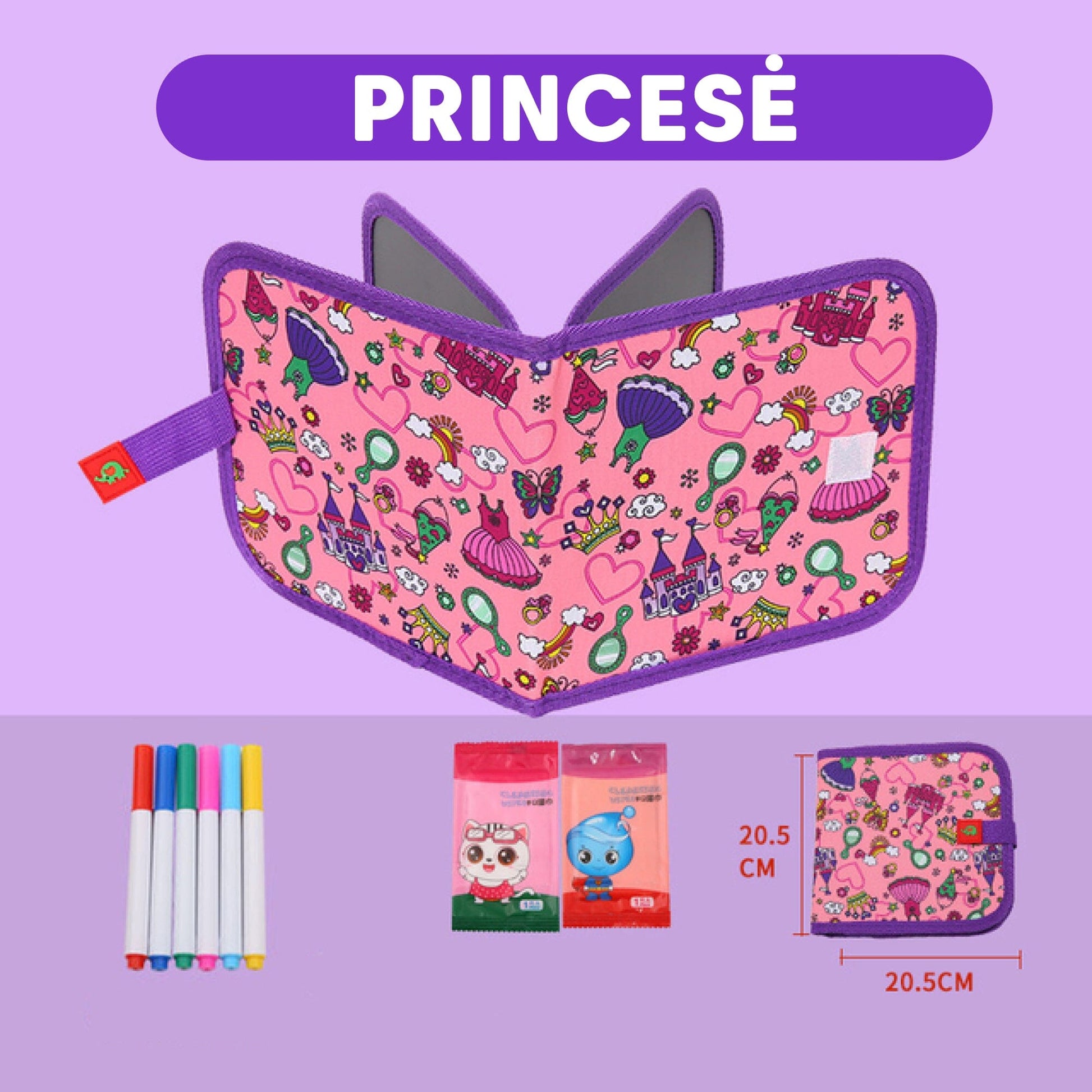 Šią knygą lengva transportuoti kelionėse ar vežtis į mokyklą. O 6 skirtingų nuvalomų flomasterių ir 6 puslapių įvairių piešinių tikrai pažadins kiekvieno vaiko vaizduotę!