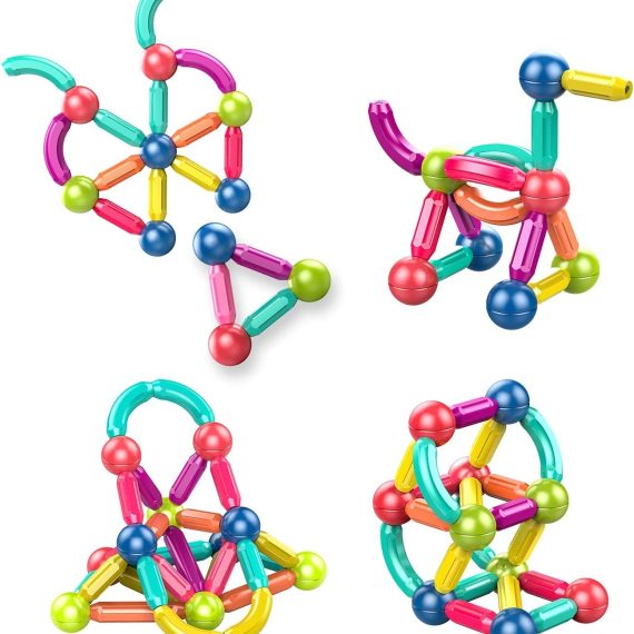 - Įvairių spalvų rutuliukai ir lazdelės leidžia sukurti ir pastatyti įvairius statinius. Tai užsiėmimas, kuris turi platų įgūdžių lavinimo spektrą. Vienas prie kito limpančios magnetinės formelės su kuriomis nebus nuobodu žaisti vaikams ir suaugusiems! Ryškios, pastelinės formelės leis vaikams pažinti spalvas bei jų formas.