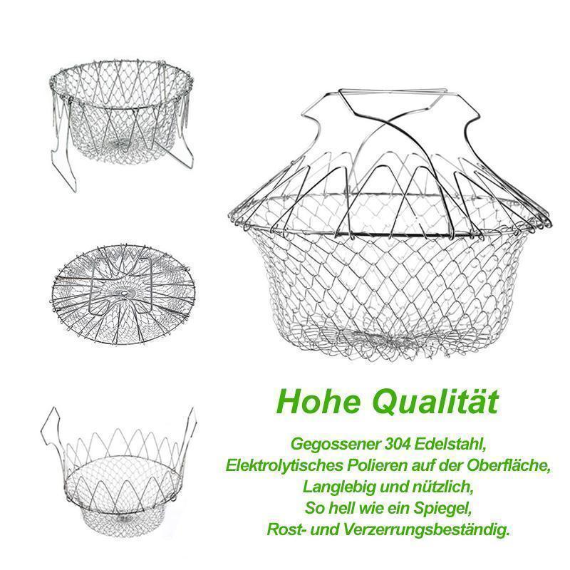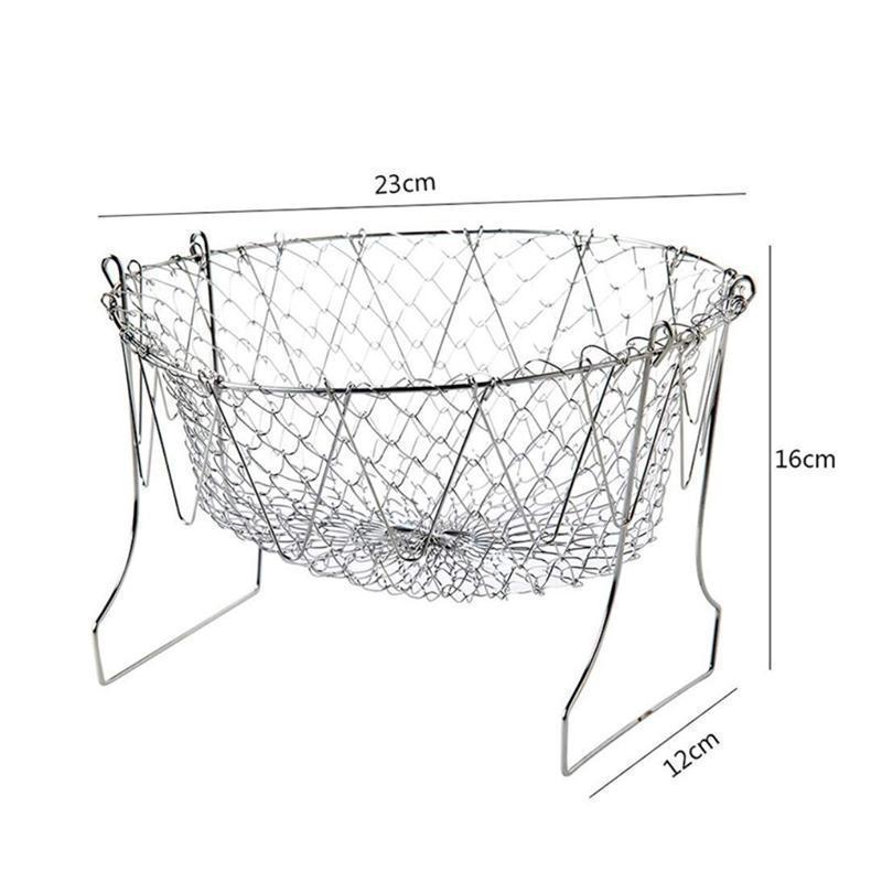 - Praktiškas ir naudingas įrankis virtuvėje! Sietelio rankenos išlieka nuolat vėsios, todėl patogiai iškelsite maistą iš verdančio vandens. Pralaidus vandeniui sietelis pašalina vandens perteklių, todėl galite iš karto maistą dėti į lėkštes ir valgyti. Sietelis yra lengvai sulankstomas, todėl jis puikiai tilps viename iš virtuvės stalčių.