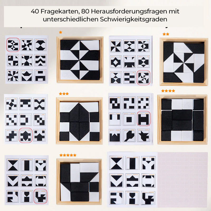 Tai puikus žaidimas, kurio metu vaikai turi sudėlioti kaladėles taip, kaip rodoma paveikslėlyje. Užsiėmimo metu lavinamas rankų miklumas bei loginė mąstysena. Žaidžiant komandomis, žaidimo metu žaidėjai turi kuo greičiau surinkti kaladėles pagal paveikslėlį, tas kuris sudeda pirmas - laimi.