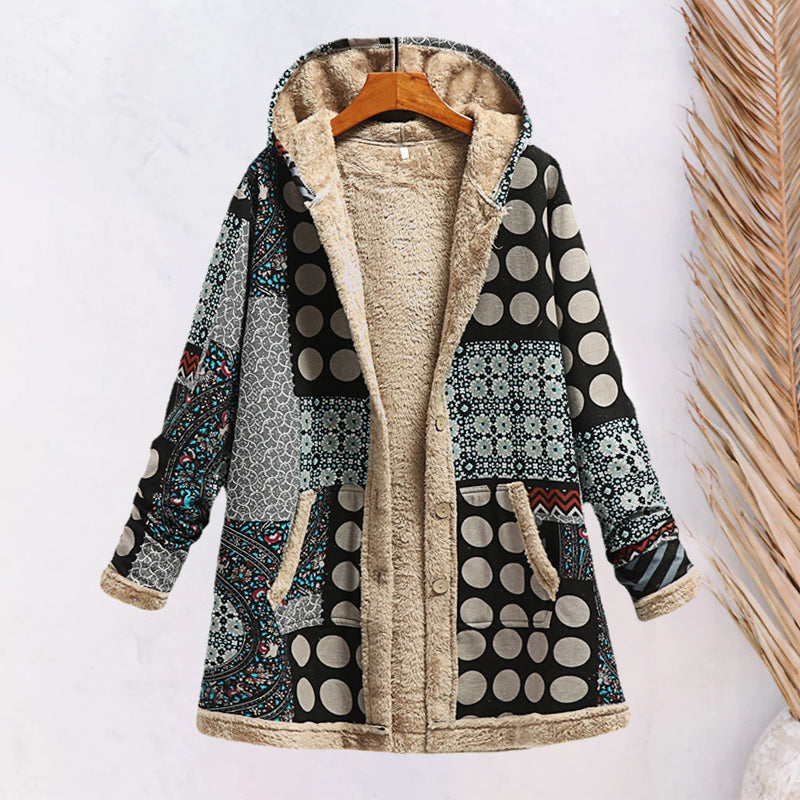 - Pasiūtas naudojant aukštos kokybės medžiagas, kurios puikiai sulaiko šilumą ir leidžia jaustis komfortiškai. Gobtuvas puikiai apsaugos galvą bei ausis nuo šalčio. Pavasarį bei rudenį megztinis gali būti nešiojamas kaip paltas, o žiemos metu kaip megztinis.