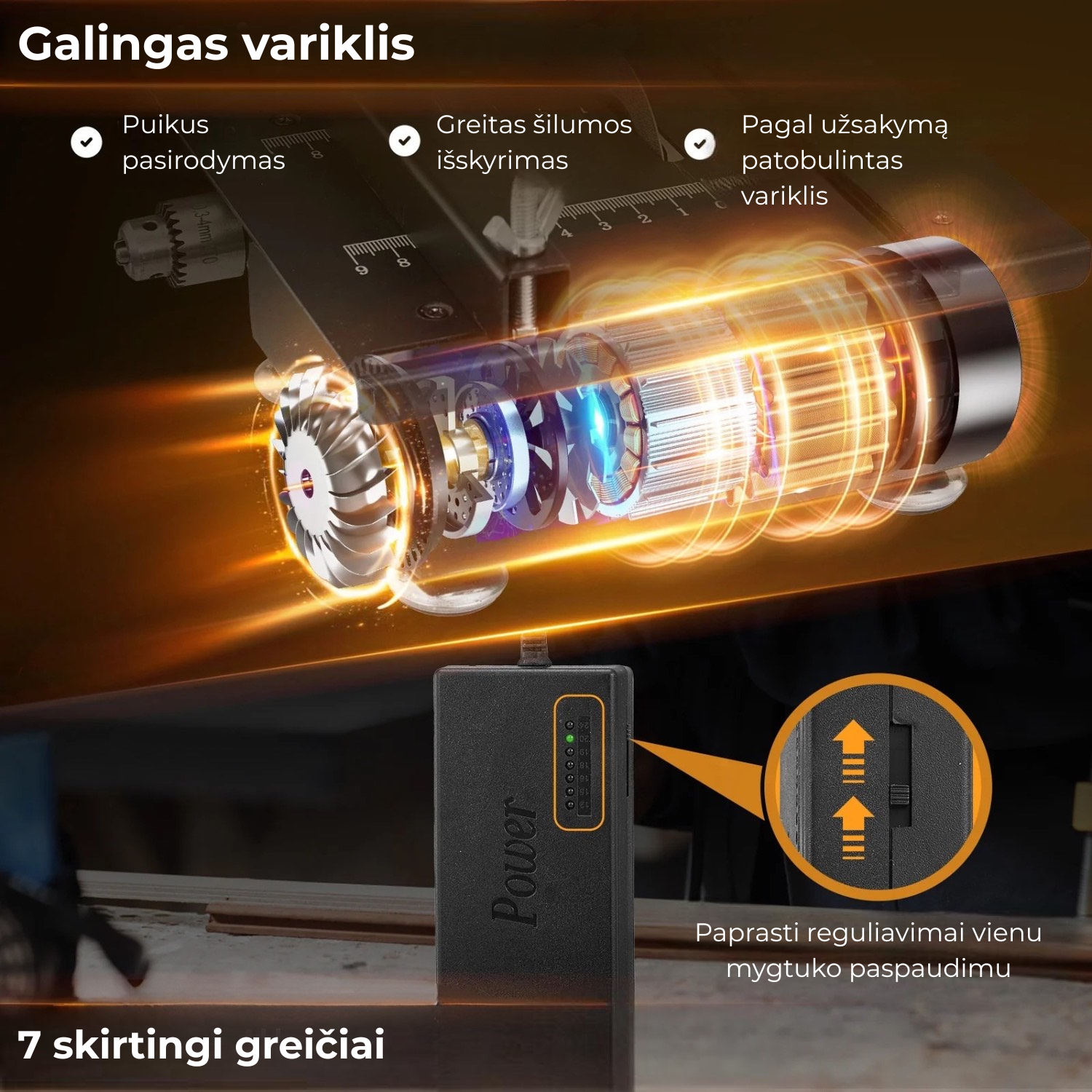 Galingas variklis leidžia pjūklui suktis aukštesniais greičiais, taip paspartinant pjovimo procesą ir sumažinant bendrą darbo laiką.