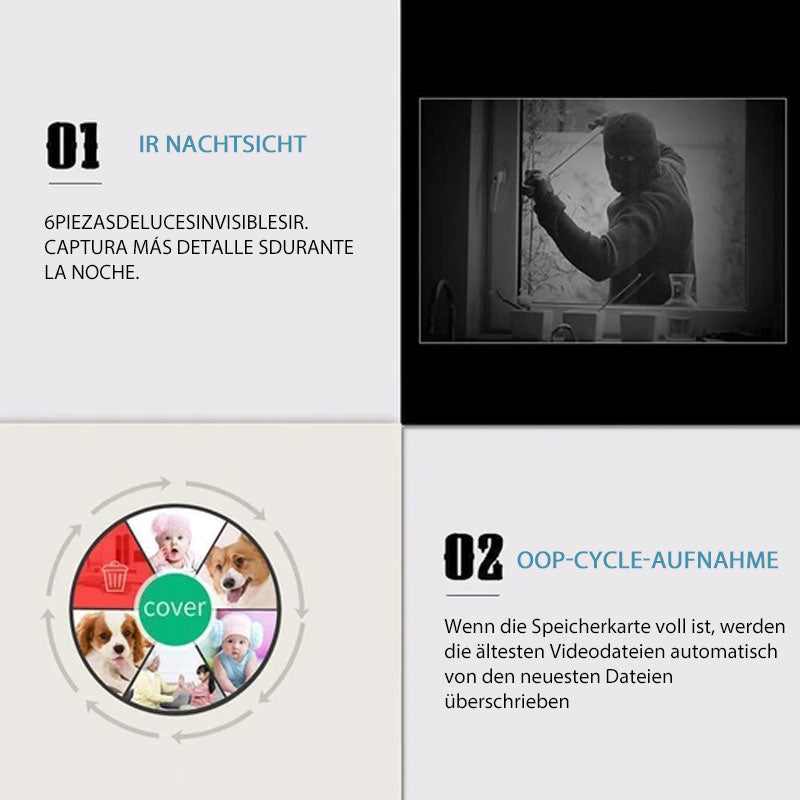 Mini vaizdo kamera automatiškai aptinka judesį ir pradeda filmuoti. Užtikrina nepertraukiamą filmavimo seansą. Išsijungia tik tuomet, kai paspaudžiate mygtuką;