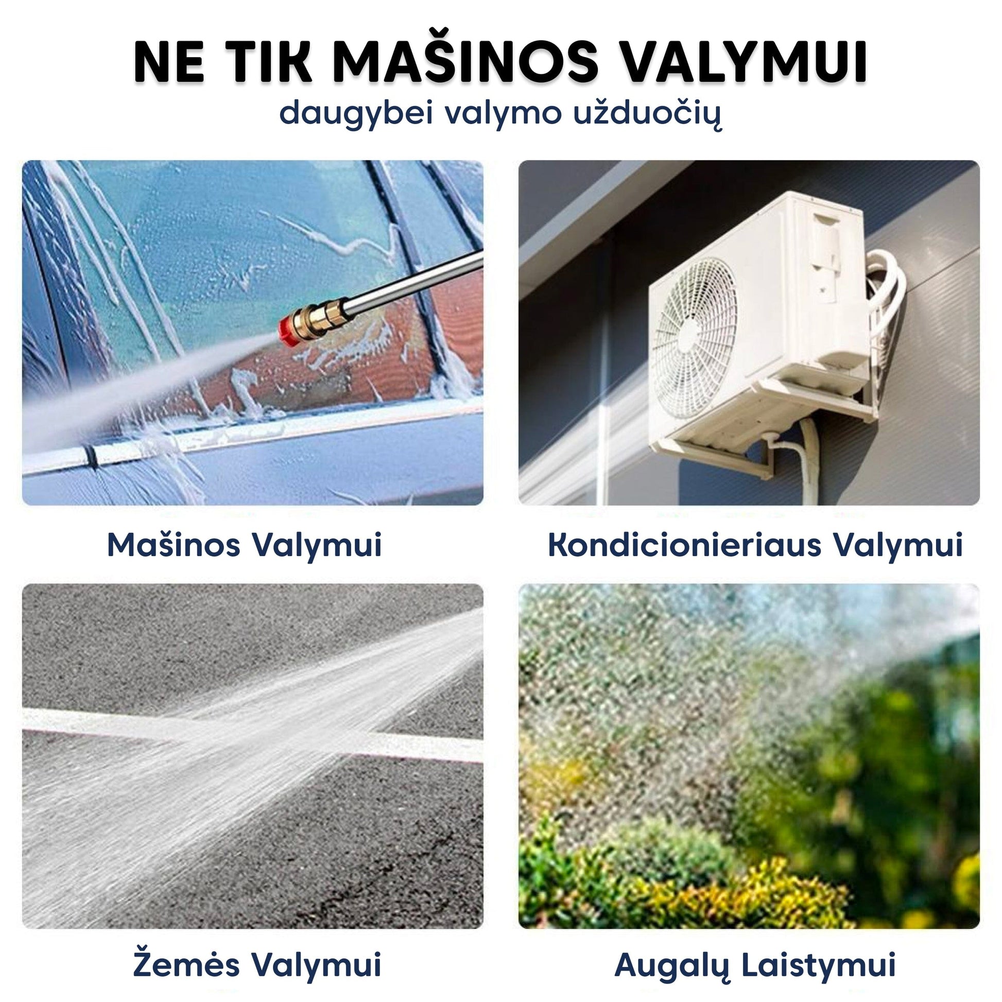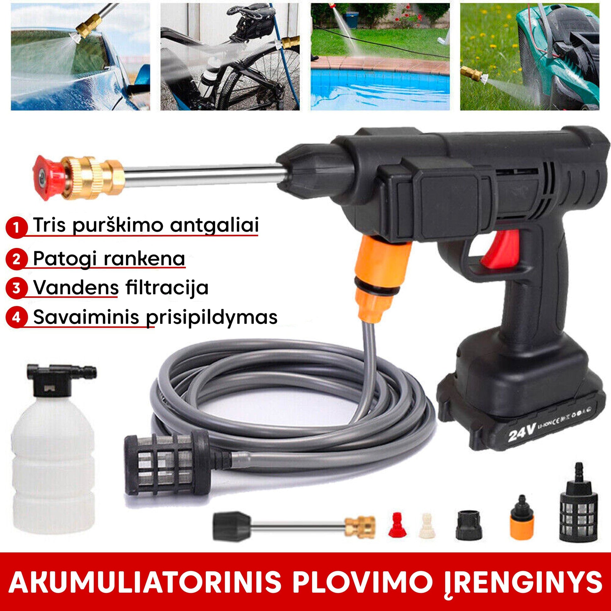 Akumuliatorinis plovimo įrenginys daugybei valymo užduočių, tokių kaip mažų automobilių, valčių, sodo baldų, šiukšliadėžių plovimui namų aplinkoje.