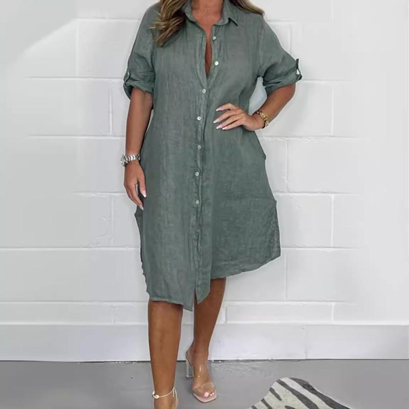 Pakuotėje yra: 1 * Moteriška medvilnės ir lino marškinių suknelė su sagomis