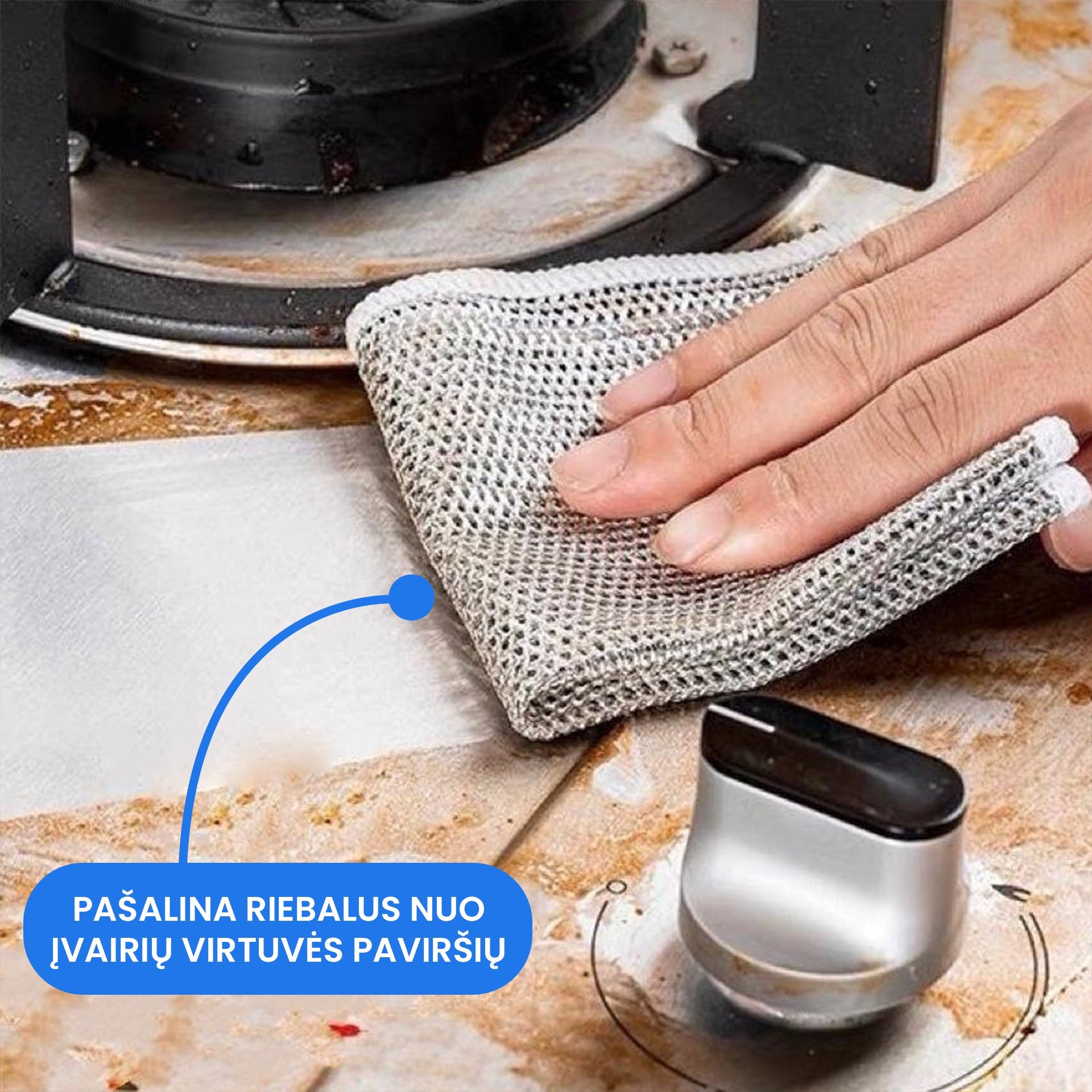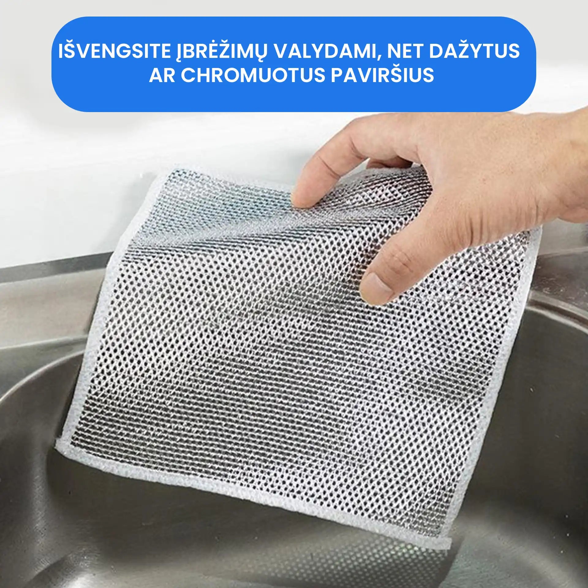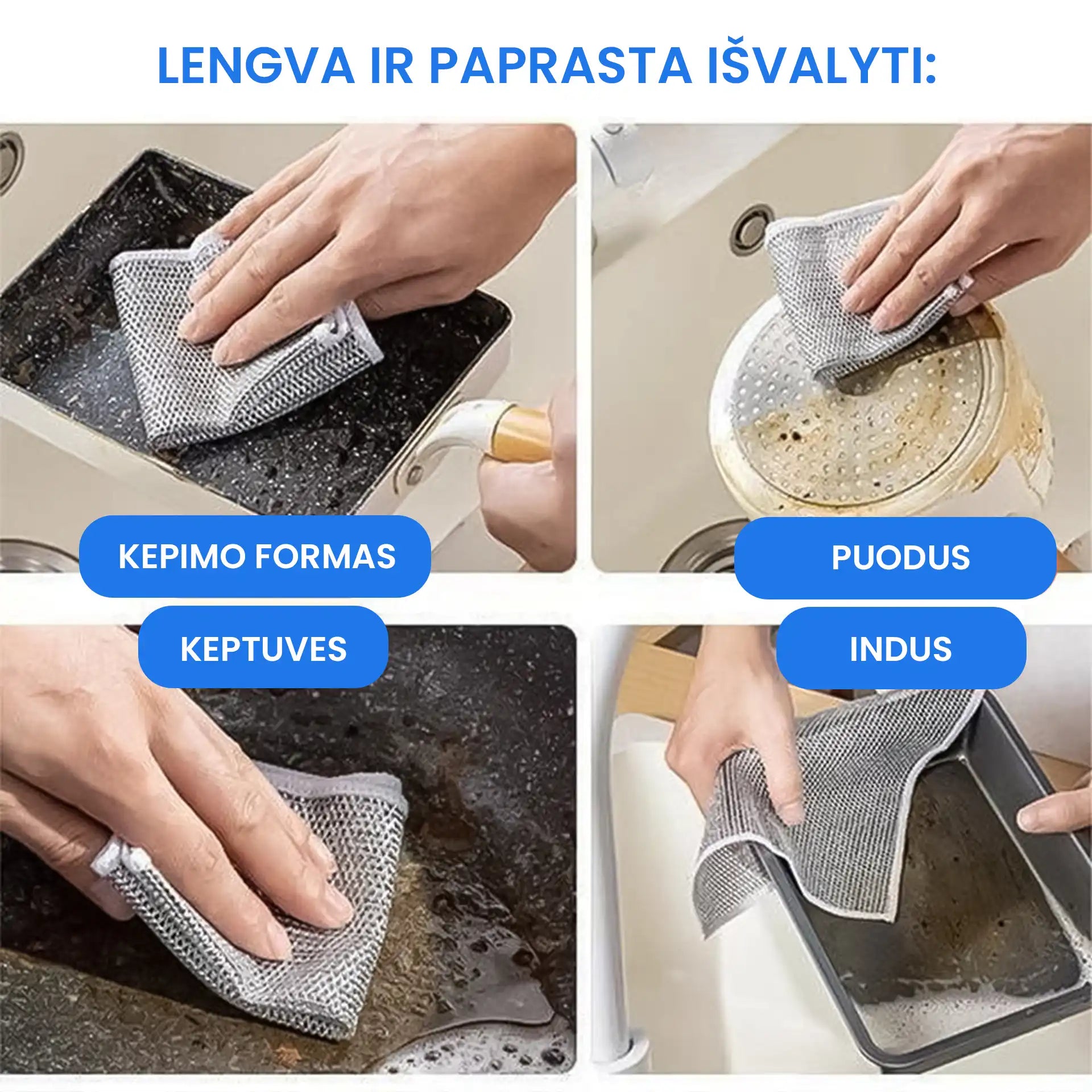 - Unikali nebraižanti medžiaga suskaido, pakelia ir atstumia pačius kiečiausius nešvarumus, nepažeisdama paviršių. Valyti bus paprasta ir greita, išvengsite įbrėžimų valydami, net dažytus ar chromuotus paviršius. Nebraižanti paviršius šluostė lengvai išvalo riebalus nuo esančių paviršių, indų ir puodų. Minkštas ir greitai išdžiūnantis audinys padės palaikyti švarą namų virtuvėje.
