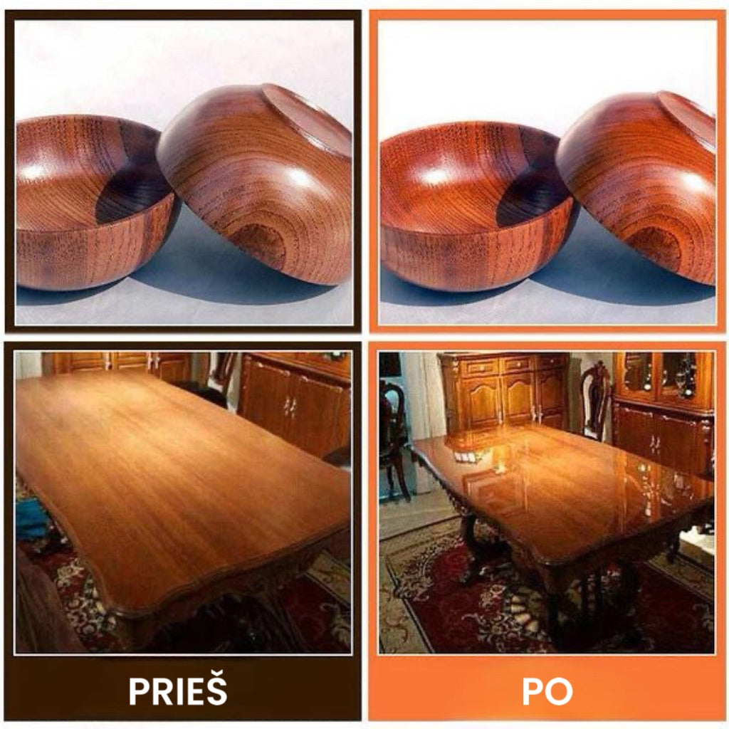 - SENŲ MEDINIŲ BALDŲ ATNAUJINIMAS: šis produktas pašalina riebalus, purvą ir nusidėvėjimą nuo dažų paviršiaus. Jį galima saugiai naudoti baldams, pagamintiems iš bičių vaško ir apdorotos medienos. Jis taip pat valo ir poliruoja medines grindis! Išlyginkite, užtepkite ir nuvalykite medienos kondicionierių, per daugelį metų susikaupę nešvarumai išnyks jūsų akyse, suteikdami baldams naują išvaizdą.